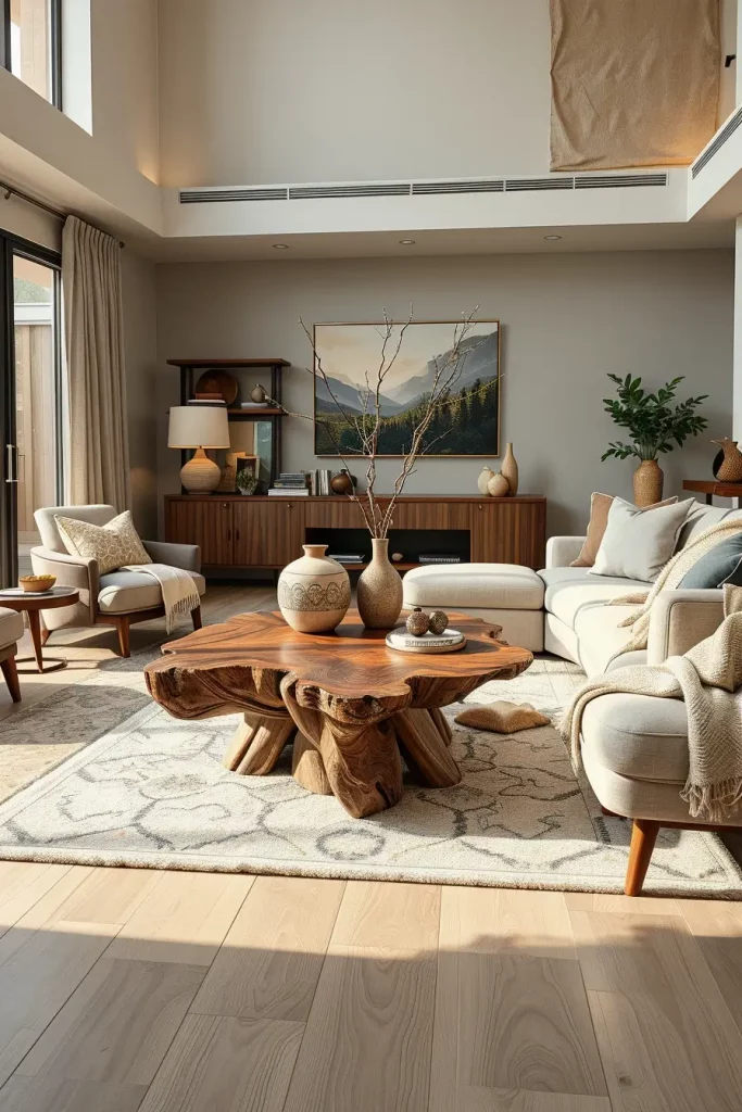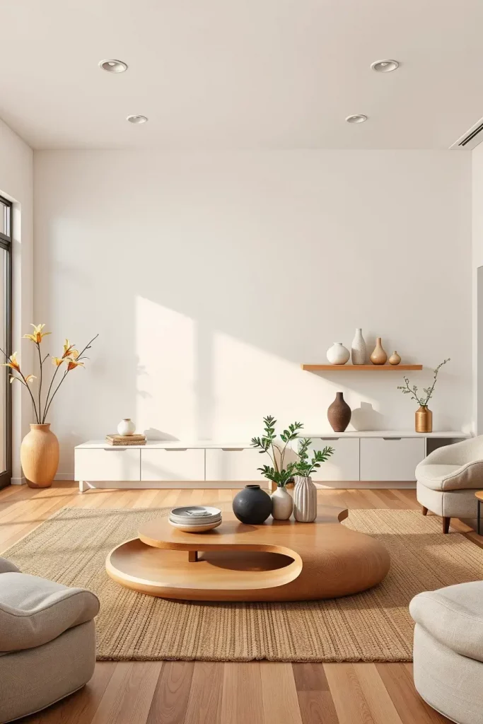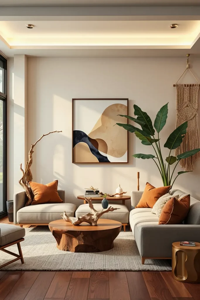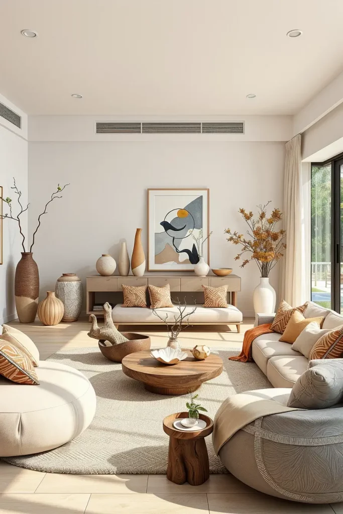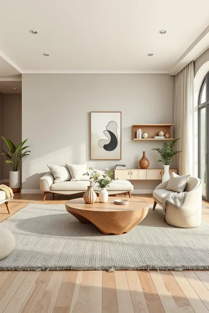64 Living Room with Organic Shapes and Natural Tones for a Calm and Stylish Home