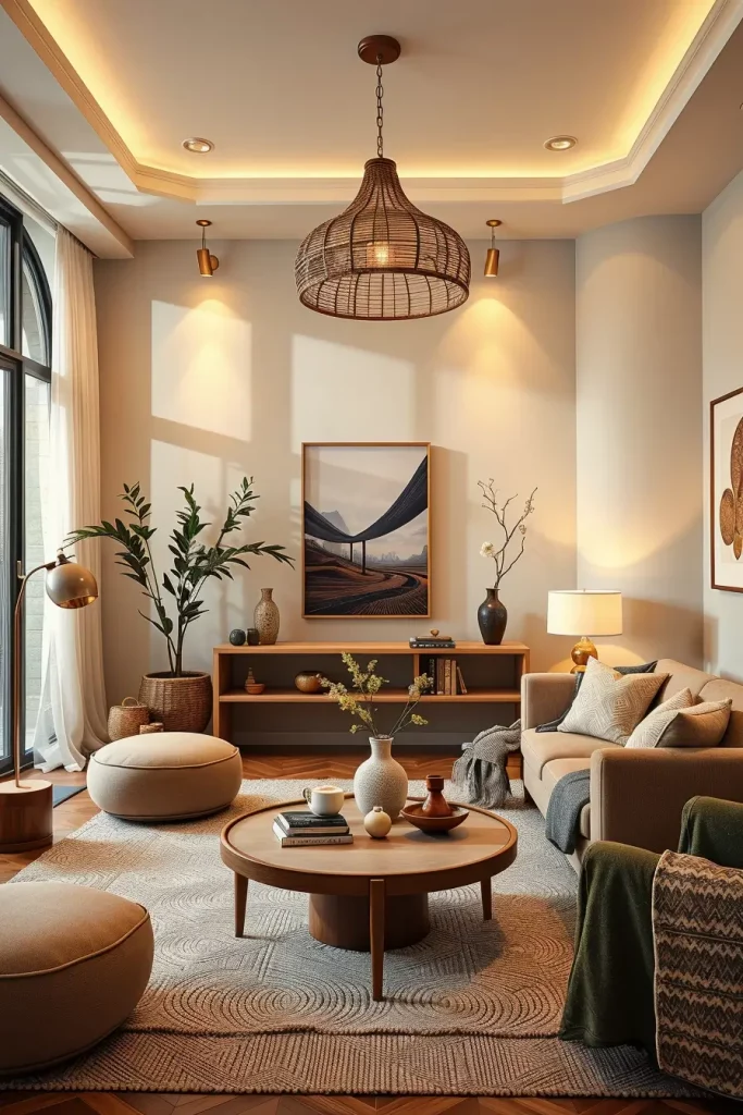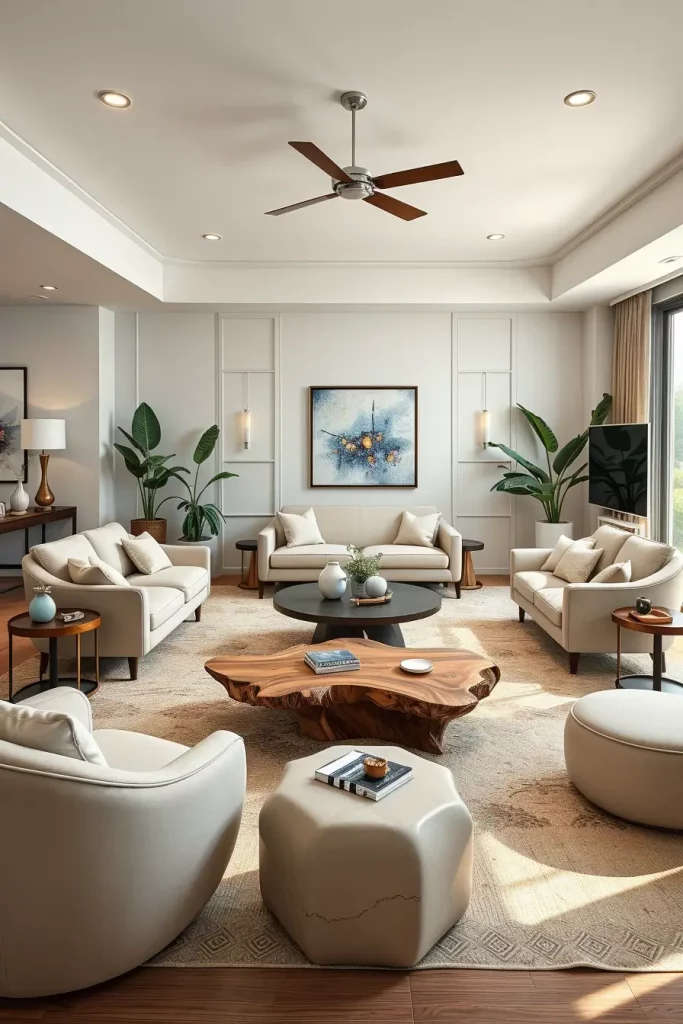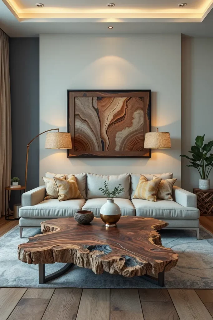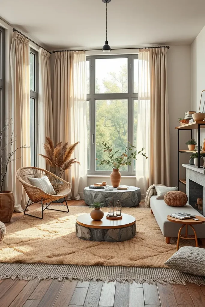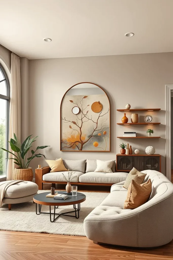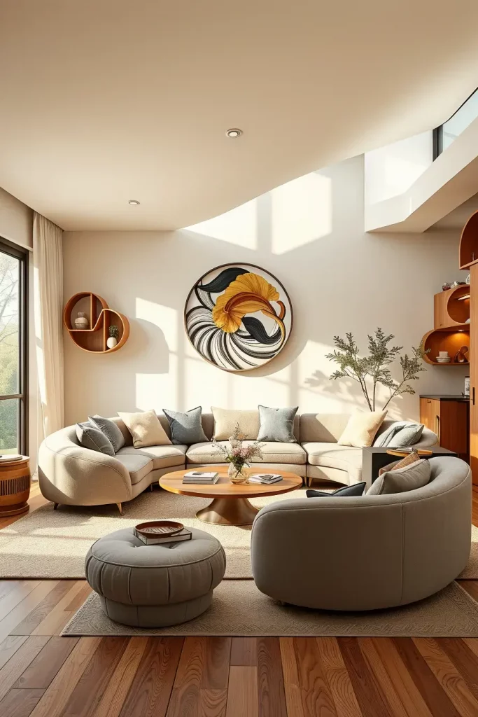 64 Living Room with Organic Shapes and Natural Tones for a Calm and Stylish Home