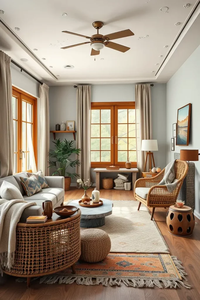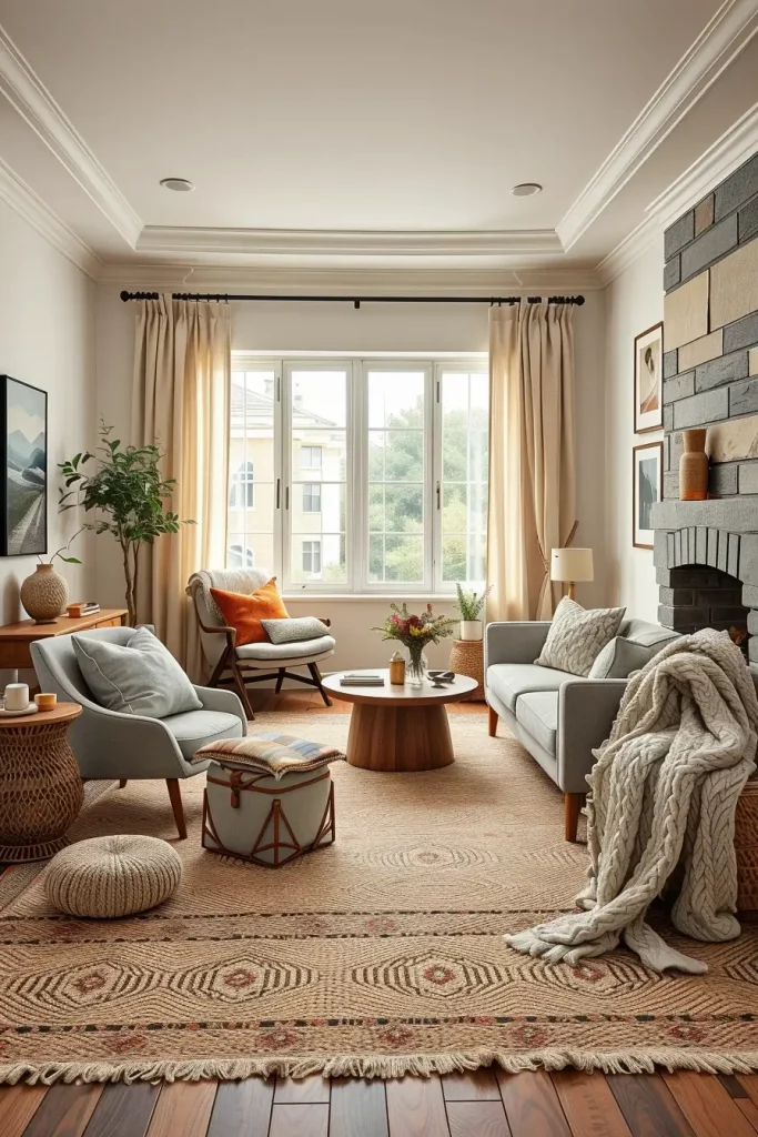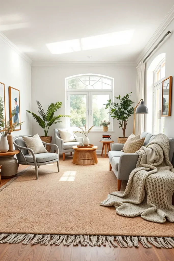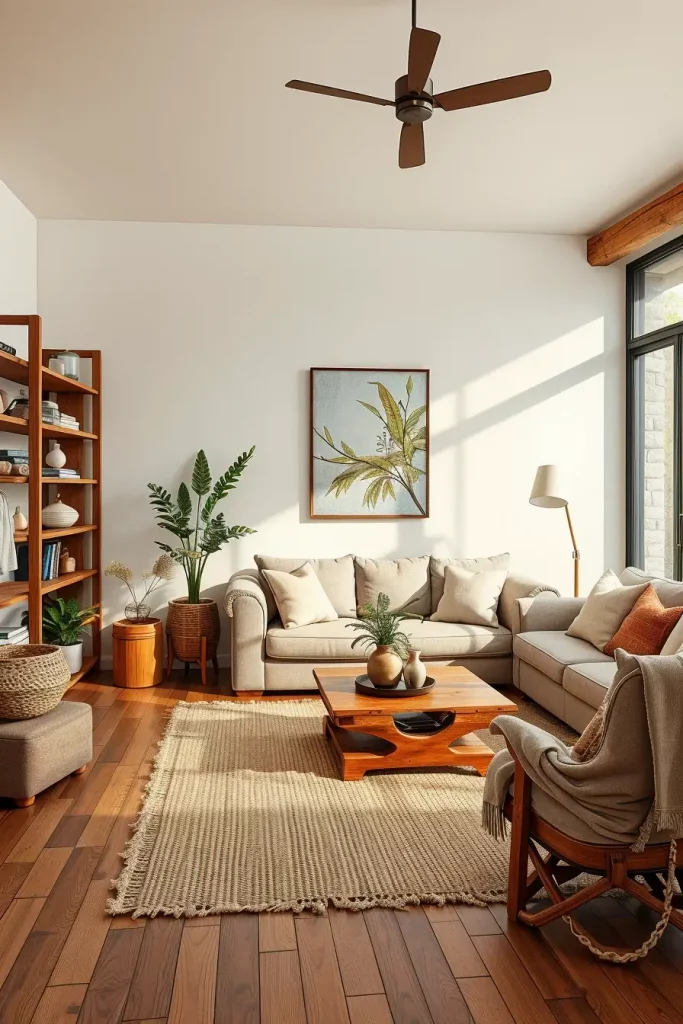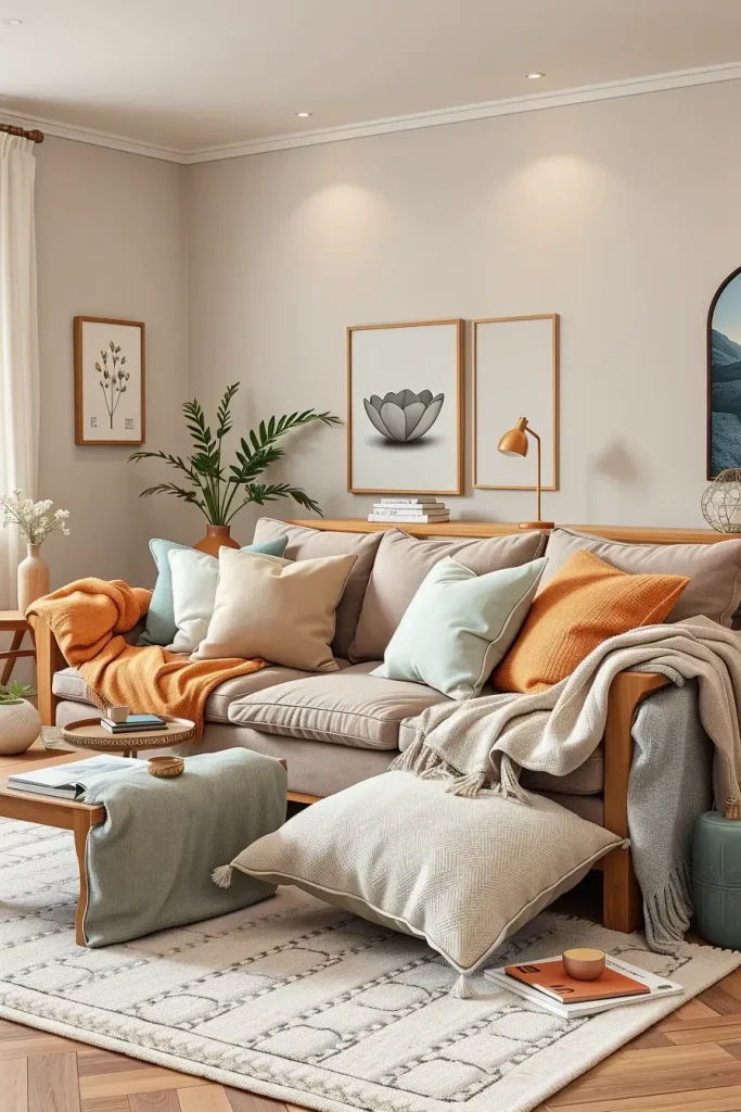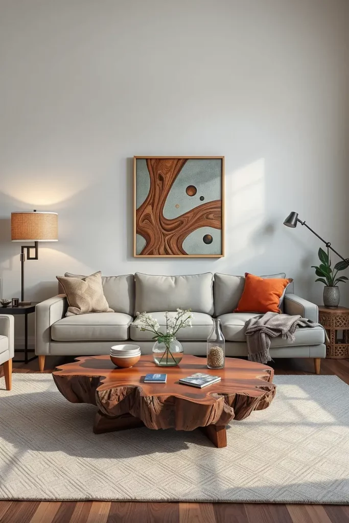I find that among the easiest things to do to ensure that a living room with organic shapes and natural tones does not get dull is to make slight seasonal adjustments. This does not involve a complete redesign- it only involves a rotation of accent pieces. As an example, in spring I could replace heavier throws with lighter linen ones and add more greenery. I bring in darker cushions and a heavier woven rug in the fall to make the room look and feel warmer.