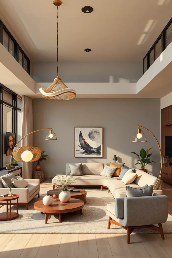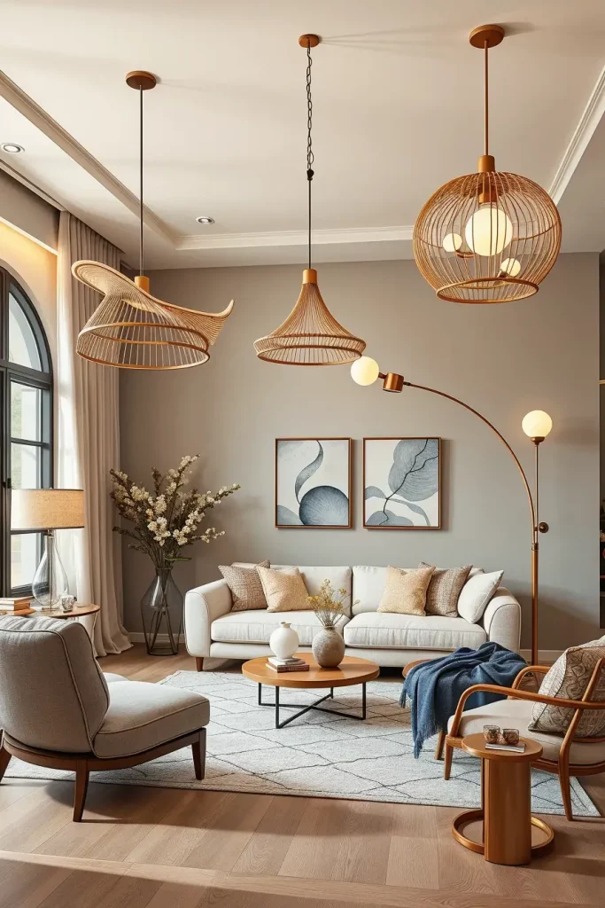 I tend to choose floor lamps with round shades, wall sconces with natural shapes and table lamps with ceramic or wooden bases. Installing dimmable lights in the area will make it flexible according to the mood and the activity.