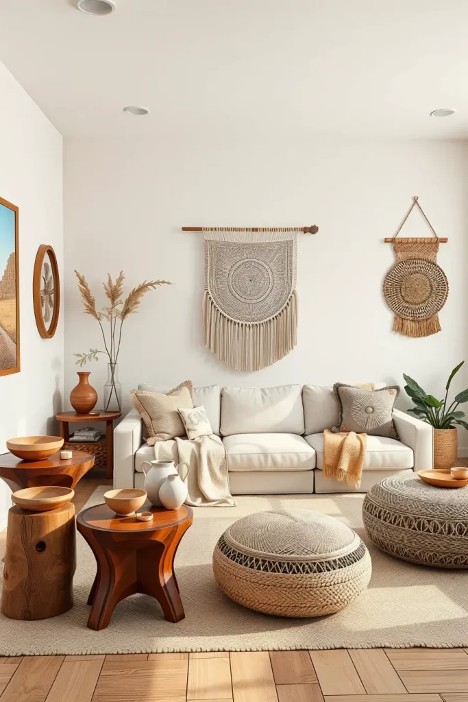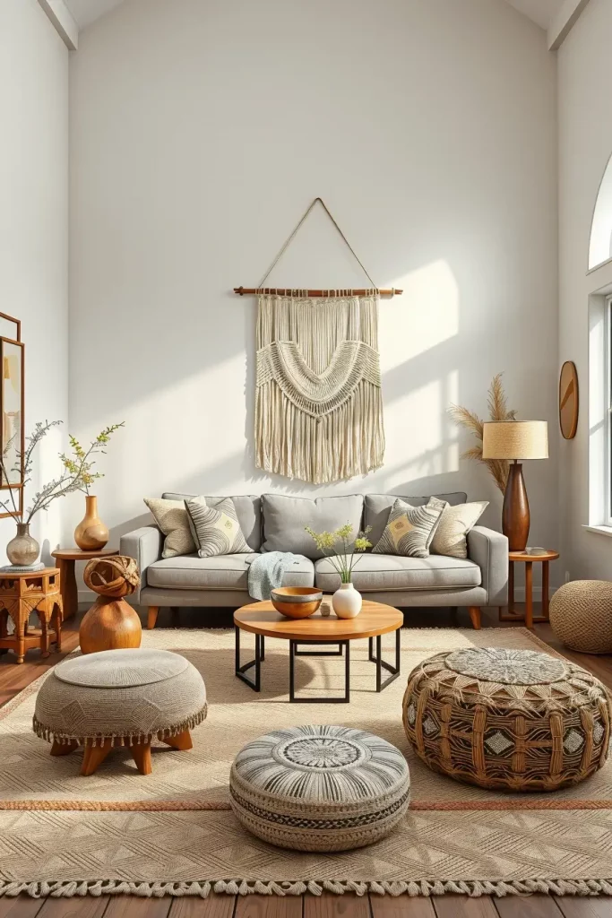 In the case of furniture, I usually combine some artisanal side tables or handwoven ottomans into the composition. A handmade wall hanging, even in natural fibers, can change the mood of a room and anchor it in texture and tradition.