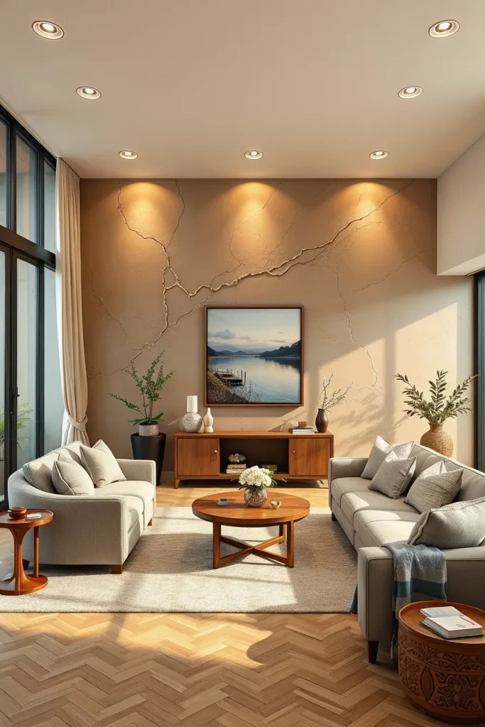 I prefer natural colors when I design a space since they create a feeling of relaxation and permanence. Warm taupes, soft beiges, and earthy browns will make a living room feel grounded and cohesive instantly. The combination of these tones and organic shapes is a match made in heaven, as the design does not seem to be excessive.