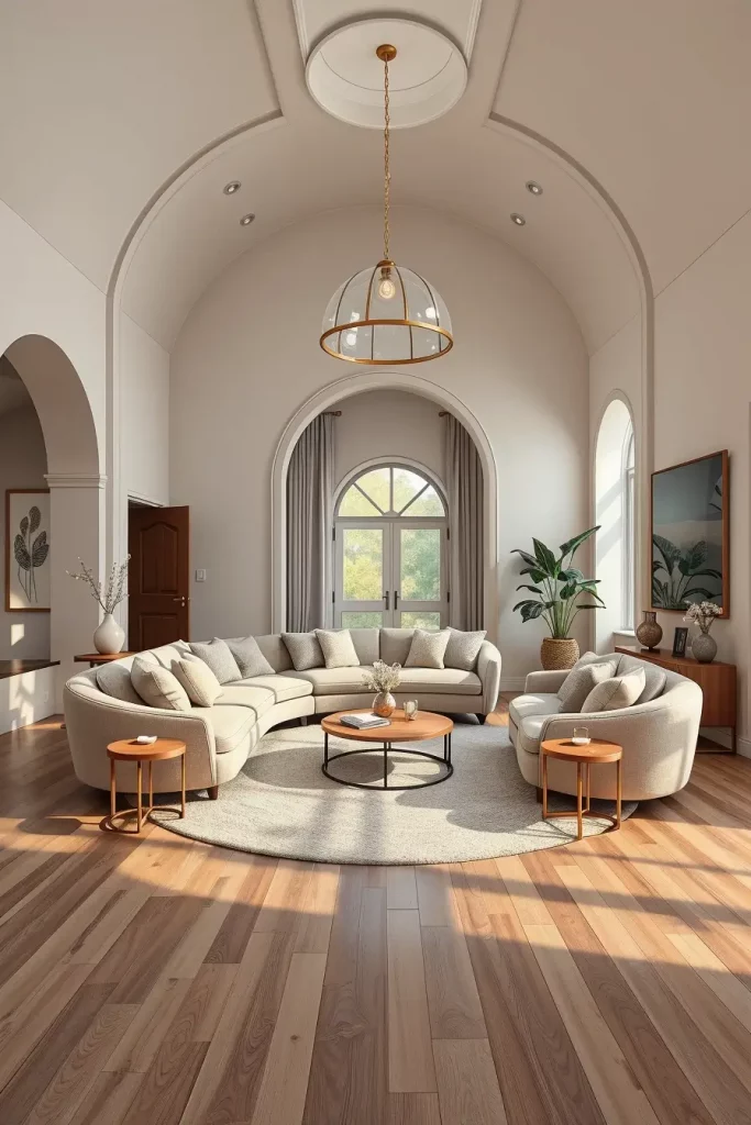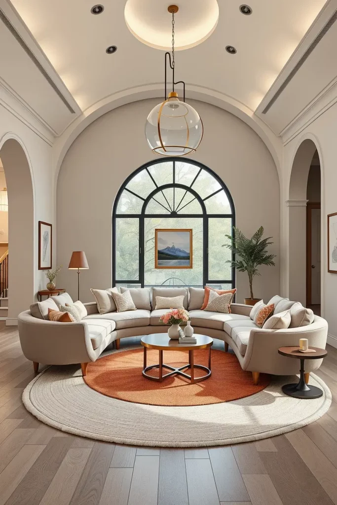 The curved seating arrangement will have the potential to change the design of a living room entirely, particularly when dealing with an open floor plan. I have discovered that a curved sofa does not only soften the room aesthetically, but it also helps people talk because it naturally faces people towards one another.