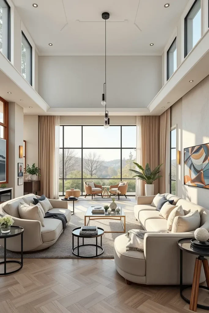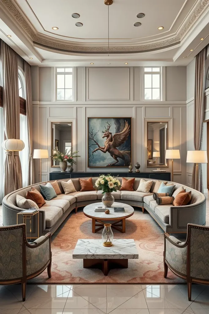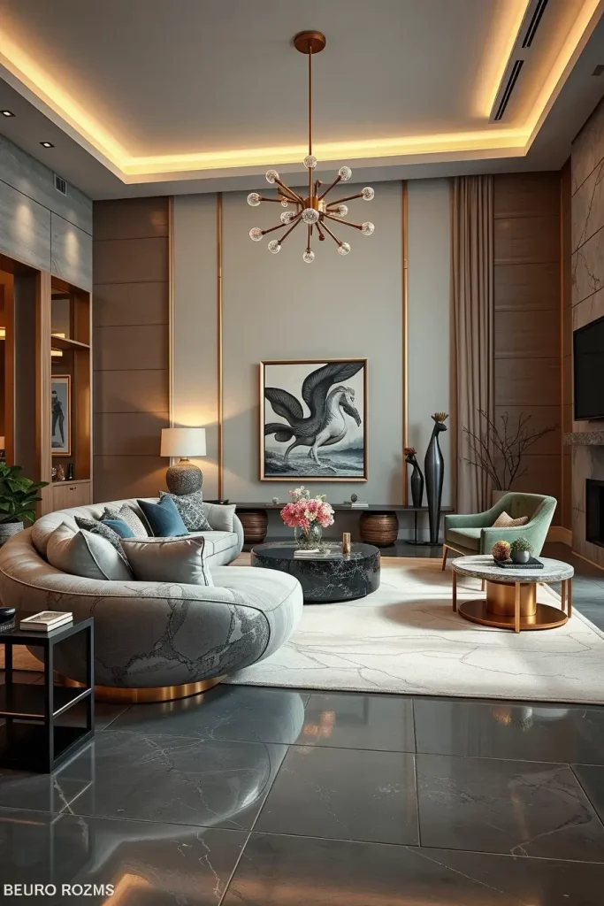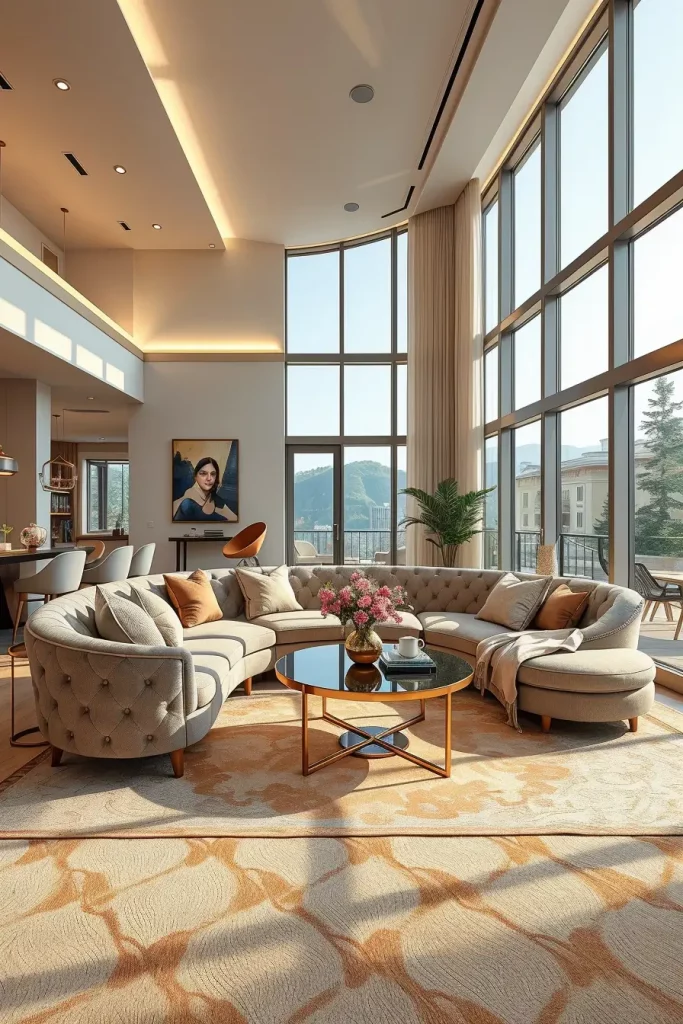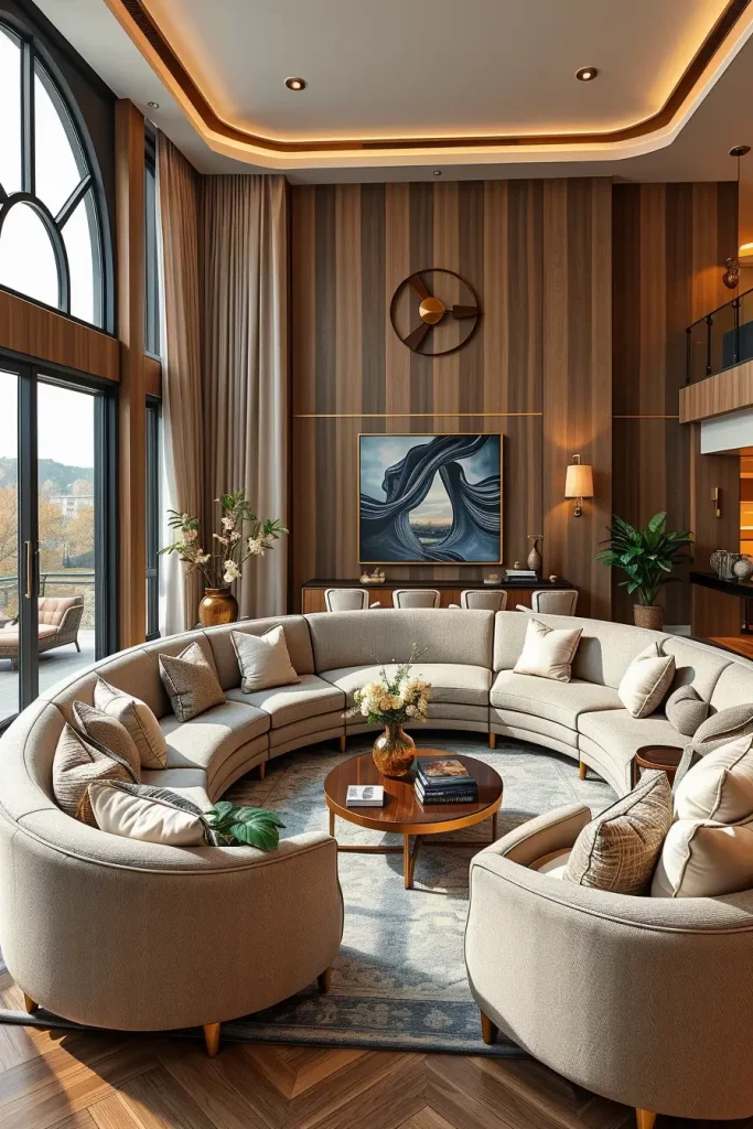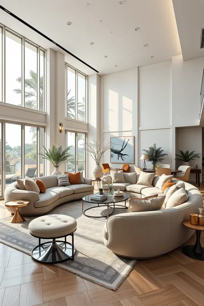 I have included curved sofas in my projects to promote social interaction, since it works automatically in attracting people. The products such as soft suede, wool blend upholstery, and matte gold accents have a feel factor, which expounds the emotional comfort. The combination of them with round coffee tables and sculptural floor lamps makes the harmonious appearance.