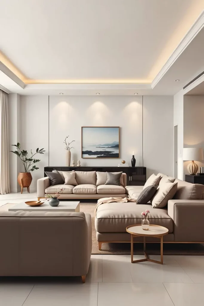 My sofas are made of fine linen, suede, or smooth leather to emphasize the touch side of neutrals. I will tend to give them an addition of textured throws, warm wood furniture and combined lighting that gives depth without being crowded. The neutral spaces do not need the visual noise but just slight contrasting.