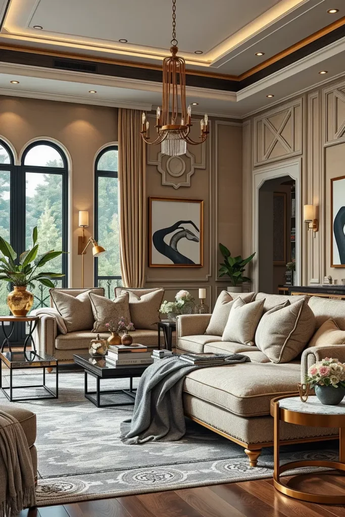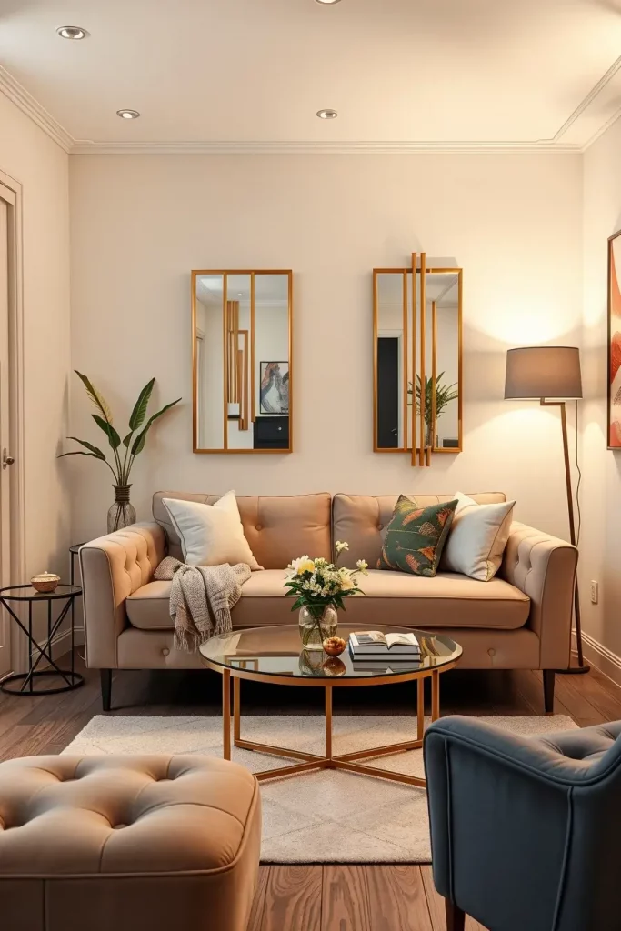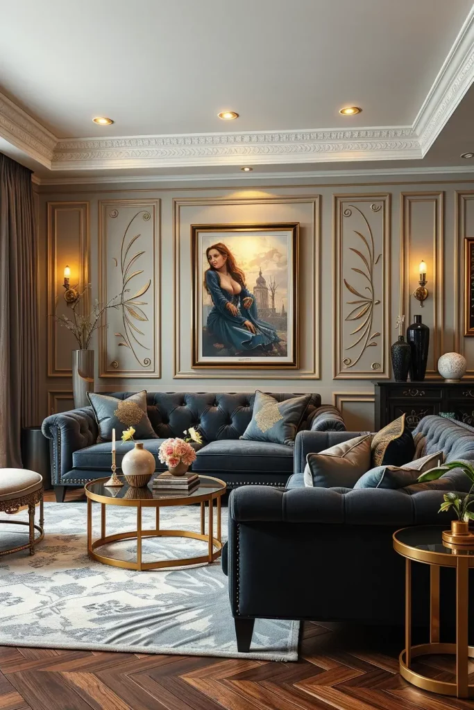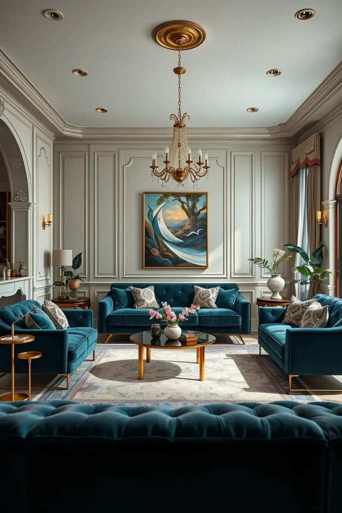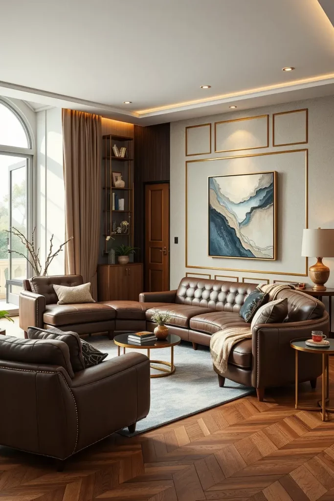 When I create interior designs with such sofas, I match them with soft neutral tones, creamy whites, taupes or blush-colored. This method enables the metallic accents to be jewelry-like elements in the room. They should be accompanied by similar gold-framed mirrors or even by brass lighting fixtures to complete the luxurious and cohesive modern look.