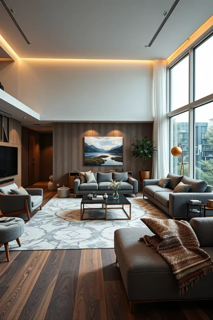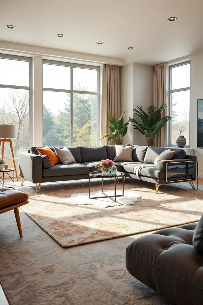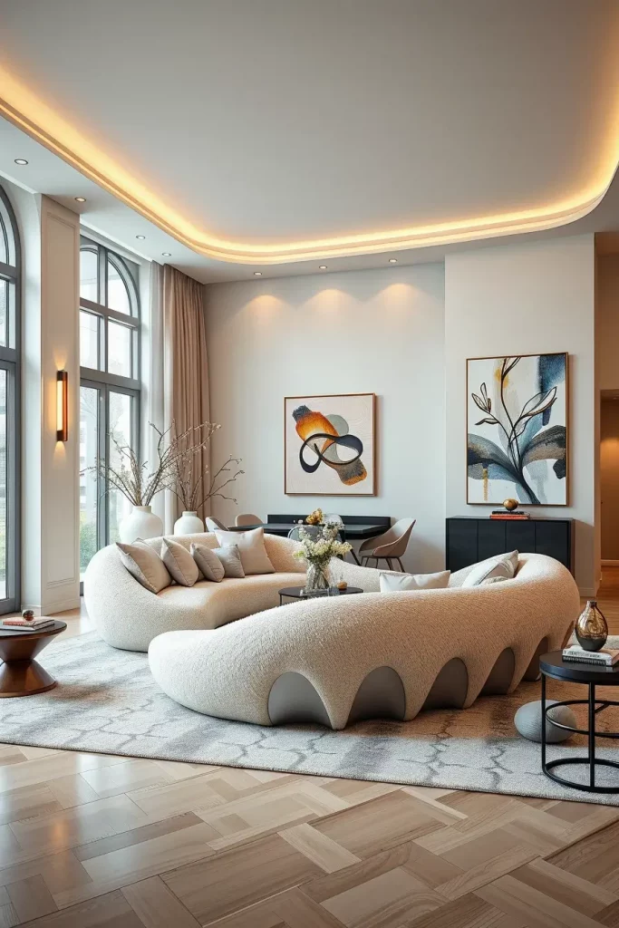 To expand this part, I would include some recommendations on how to complement sculptural sofas with low-keyed rugs and lighting to ensure visual harmony.