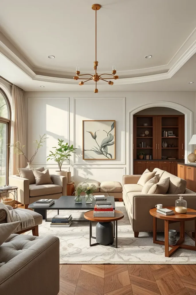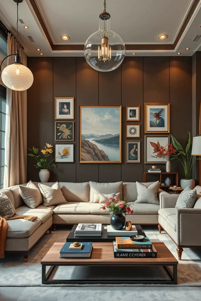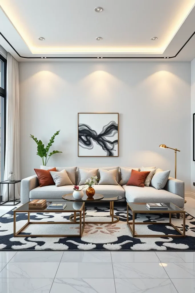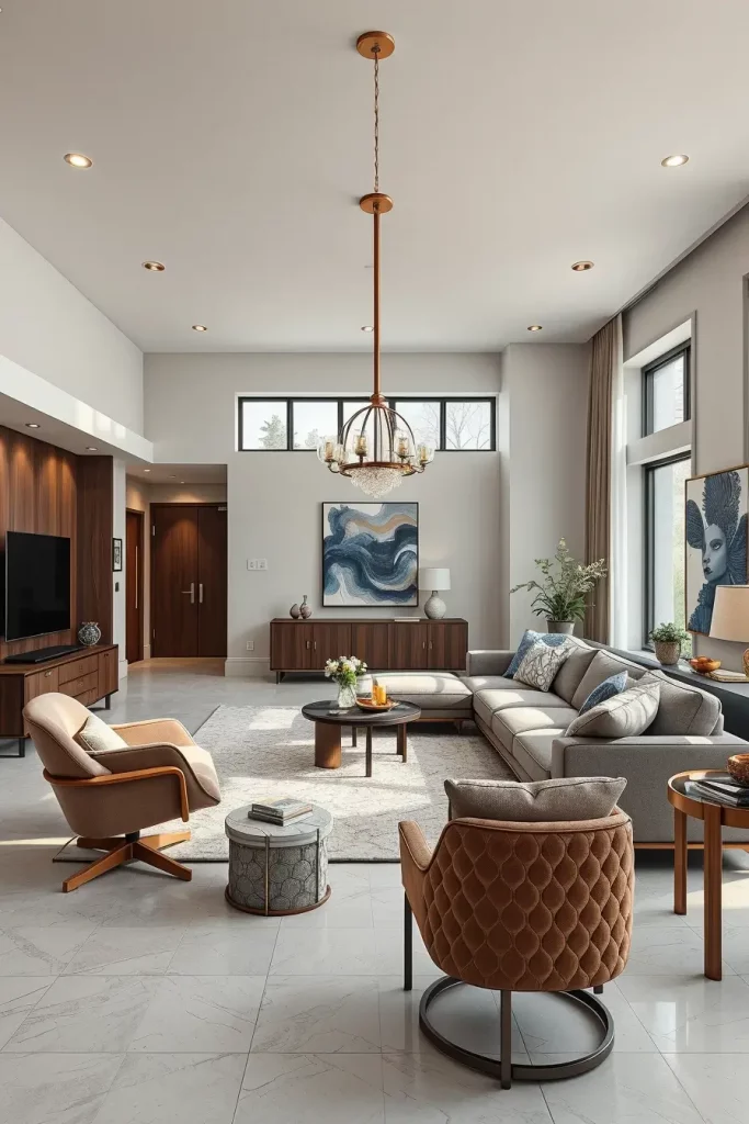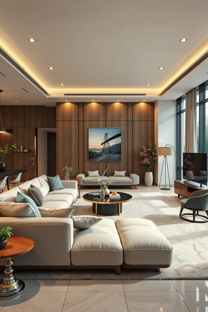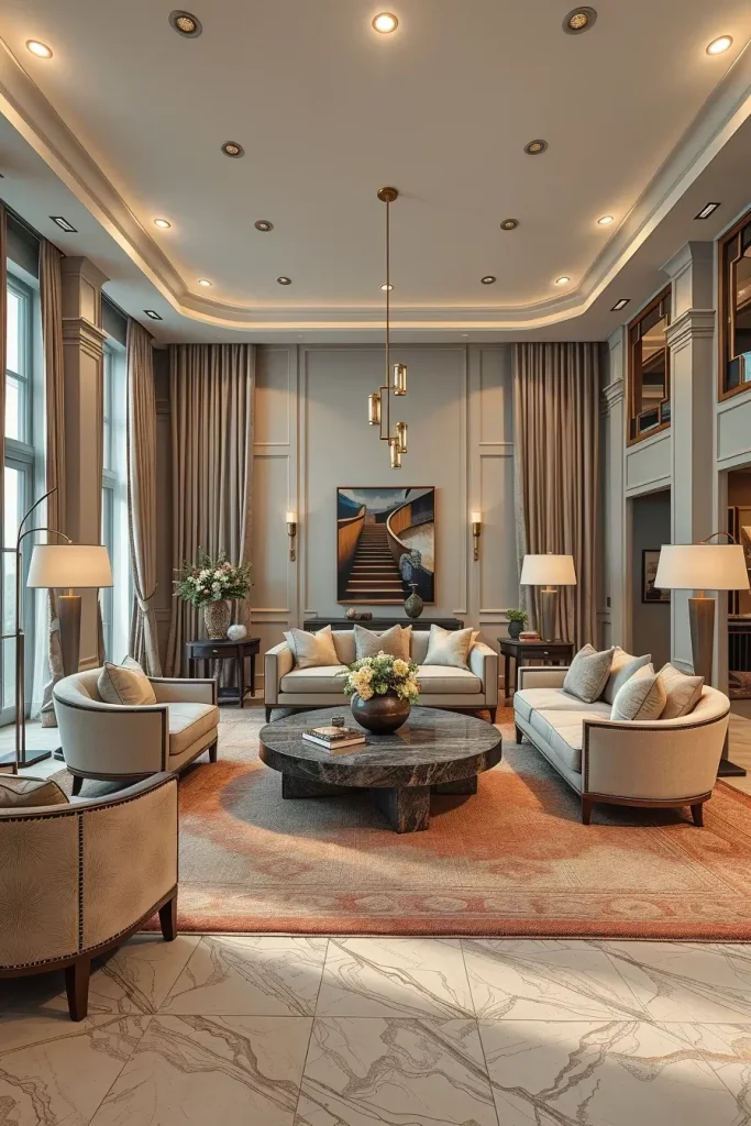 When choosing the layout of such areas, I pay attention to visual narration the matching of the sofa to the additional accent chairs, artistic displays, and custom-made lamps. The intention is to ensure that each angle makes sense and is unified.