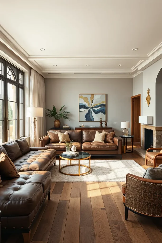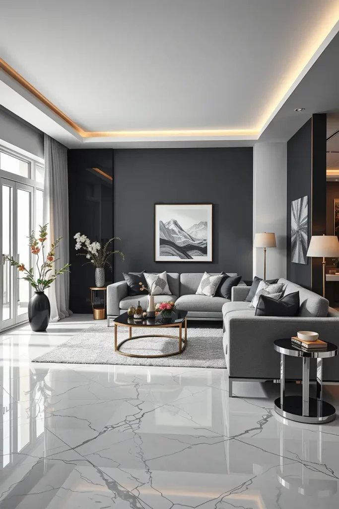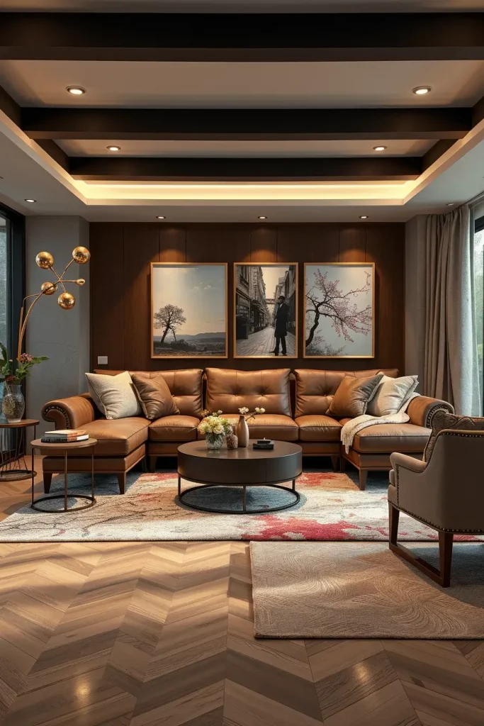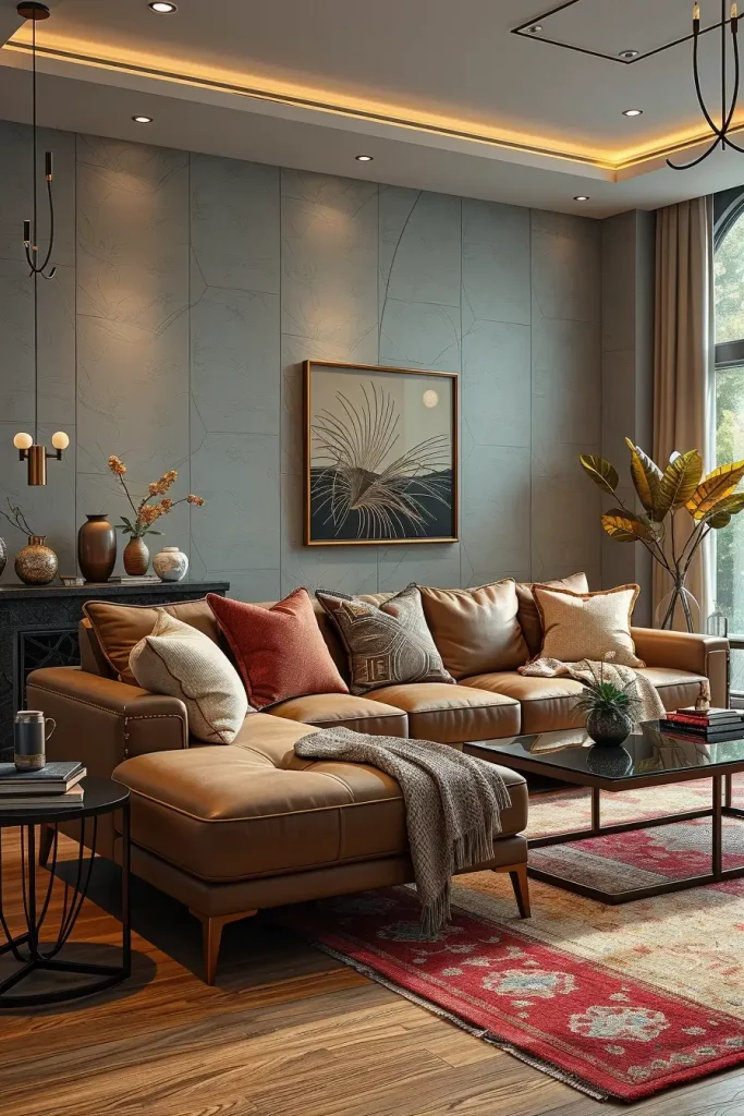 With such tones, I would rather combine textured linen or nubuck upholstery with wooden or stone accents. The outcome is balanced and solid, and it fits perfectly well in the house that wants a more relaxed modern style.
