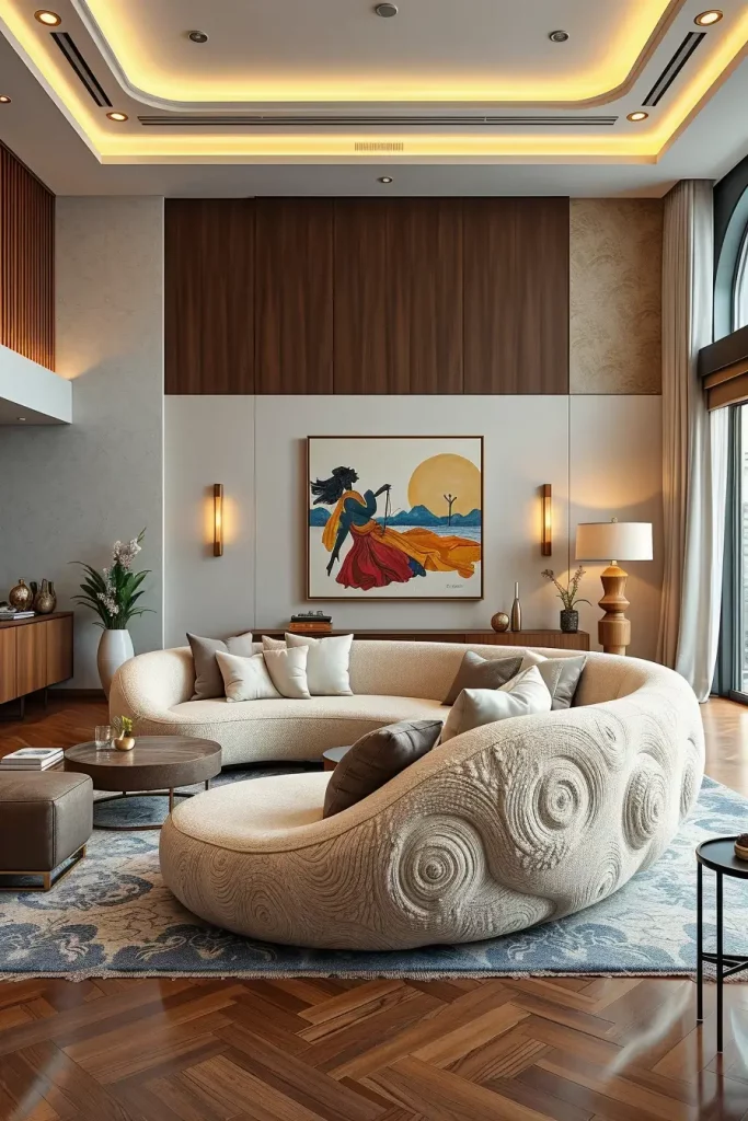 Mega homes should have mega statement pieces and 2026 boasts of these with the oversized designs of sofas with sculptural figures. I am attracted to crescent or modular furniture, which is covered with textured fabrics as it creates motion and depth in an expansive living space.