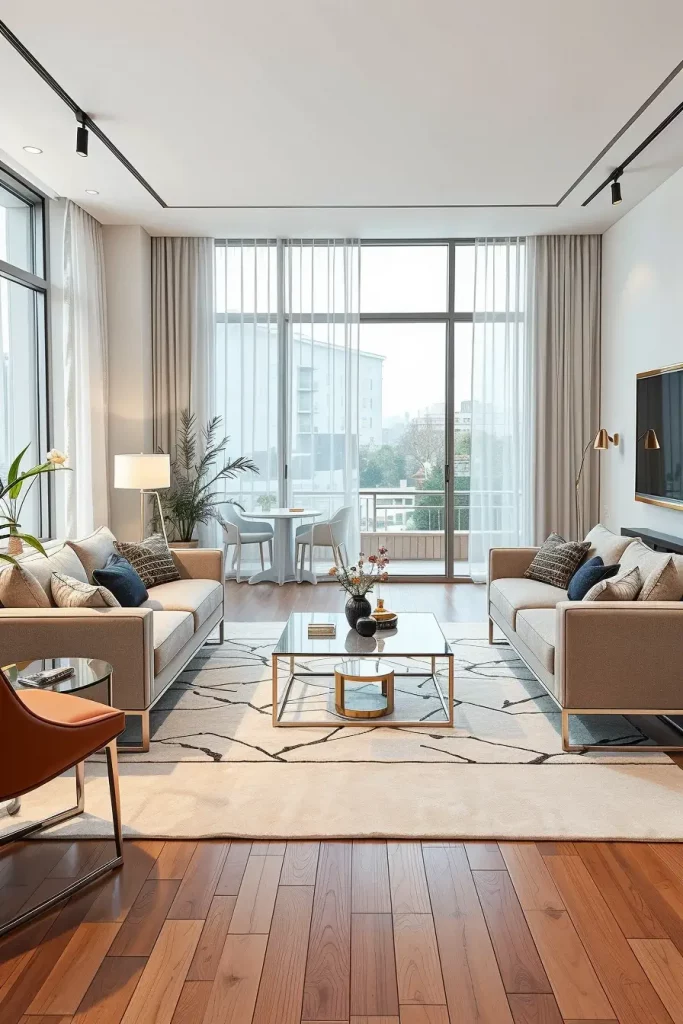 I would take the design a step higher and incorporate some small elements of texture – such as a boucle throw or a leather ottoman – in order to make the space look layered and welcoming instead of austere.