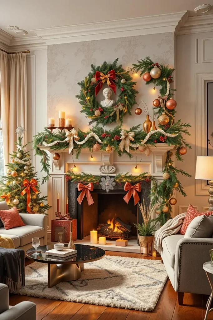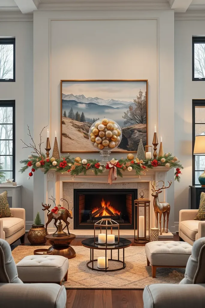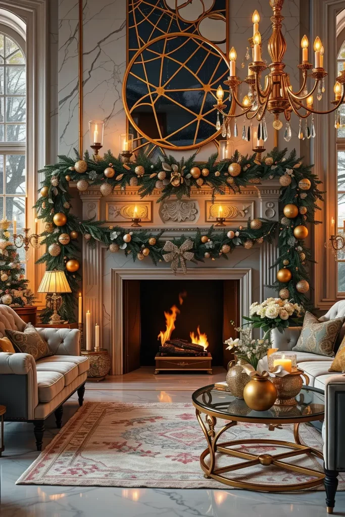 I had always been fond of glamorous appearance of metallic mantle decorations. They are quite light reflective and give an impression of lavishness that suit well with the contemporary holiday rooms. Simple designs are being glamorized in metallic tones which are popular in 2025 such as gold, silver and champagne.