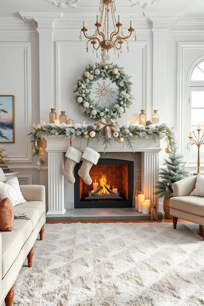 Cozy White Mantle Xmas Decor for a Snowy Ambiance