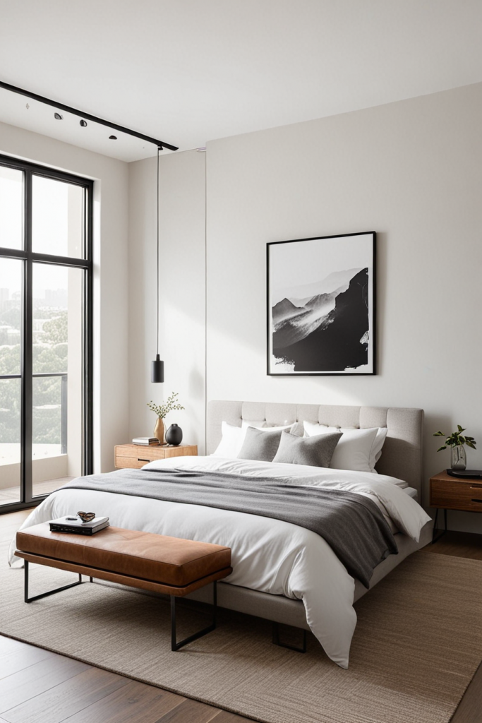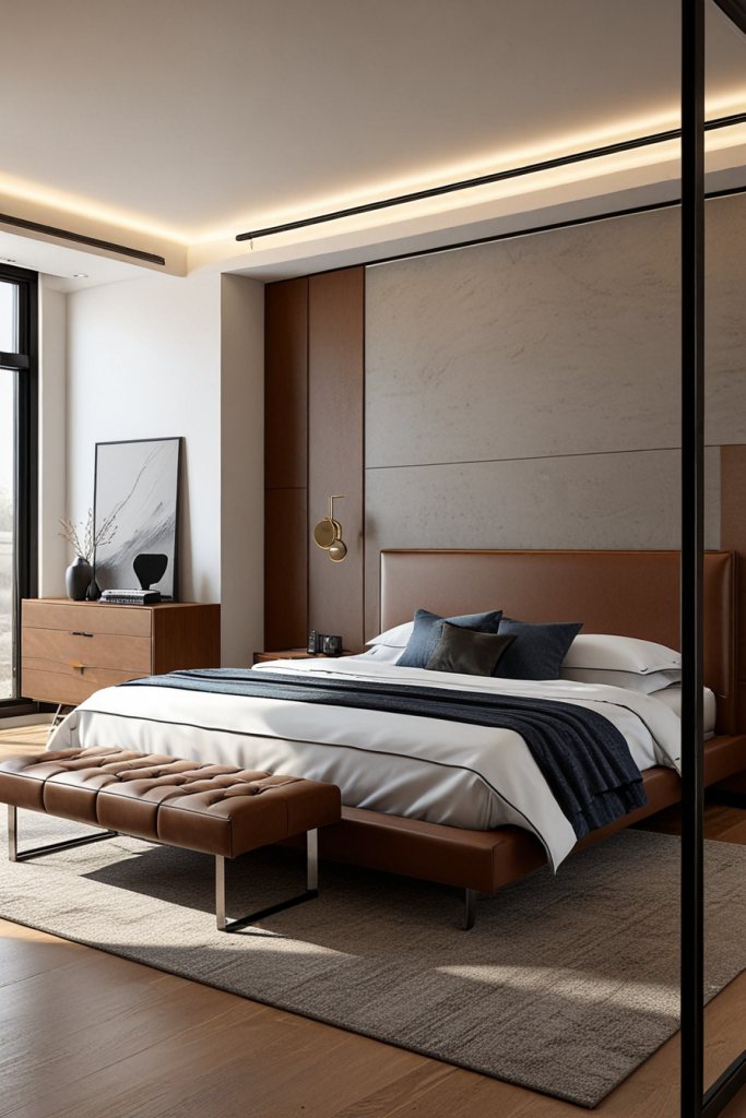 A mixture of different textures is essential when attempting to achieve depth or contrast in a modern masculine bedroom. Smooth leather, rugged wood, and soft textiles introduce interesting contrasts and improve the visual complexity of both modern furniture and contemporary decor. As a result, a dynamic space is created in which every surface aids in achieving an engaging as well as a balanced design.