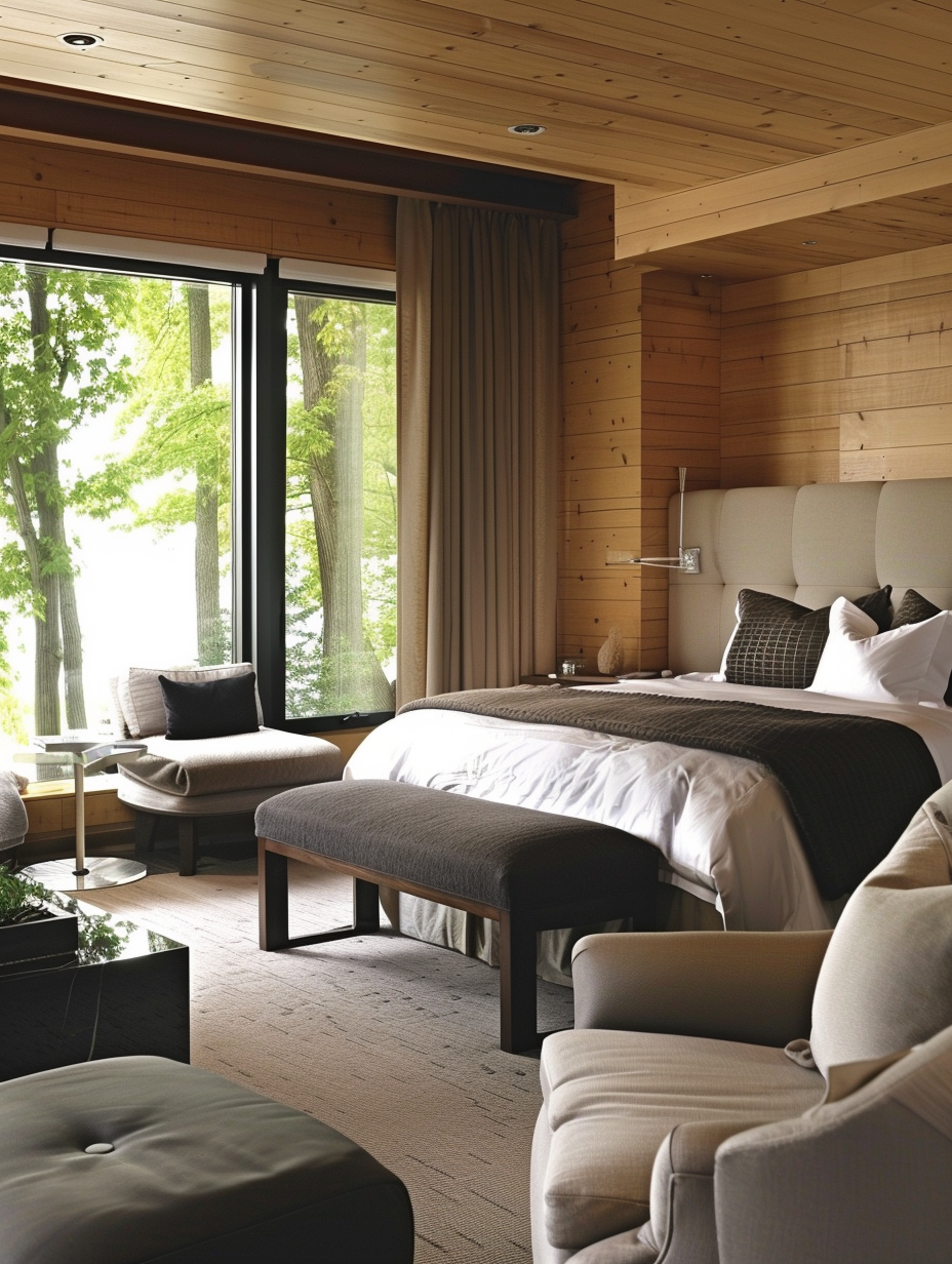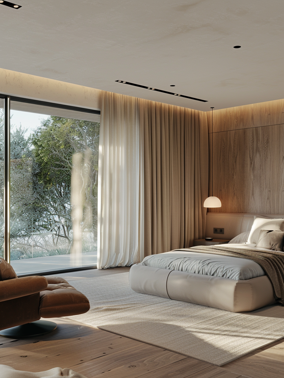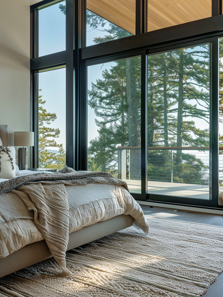 Planning the master bedroom with lovely sights requires exploiting the natural splendor all around. Spacious windows, sliding glass doors, or even a private balcony can display striking views. The inside does not only need to emphasize but also underscore the view, not over-decorated but simple in a concise manner, and more focus on natural colors and materials that are so easy to bring to mind the interior.