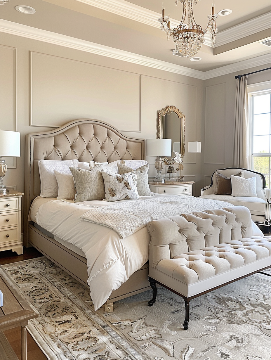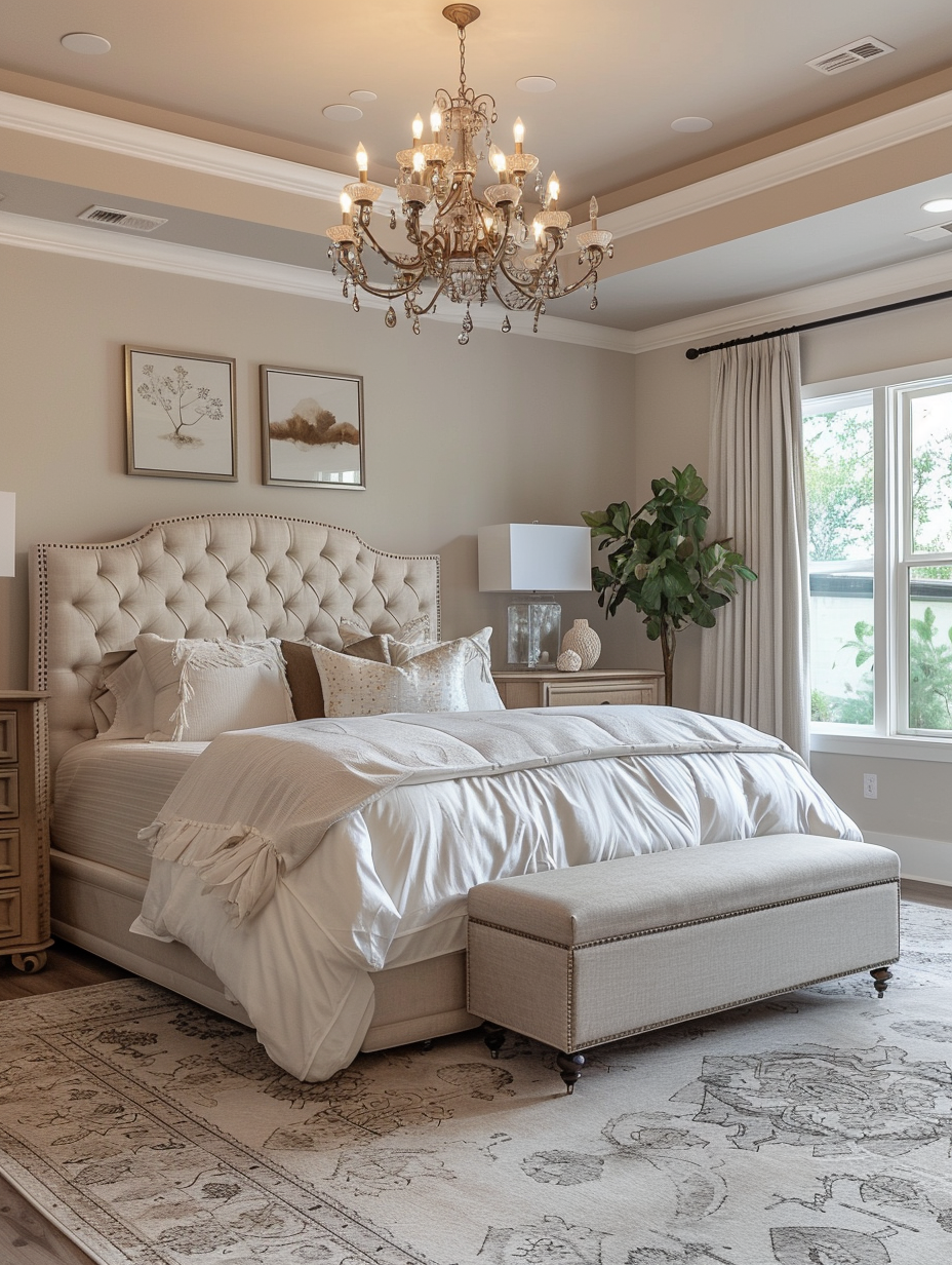 A classic and timeless master bedroom design never goes out of style. Choose quality furniture with elegant lines and neutral colors that stand the test of time. Incorporate traditional elements like tufted headboards, ornate mirrors, and classic patterns. This design is all about balance and harmony, creating a space that is both stylish and enduring.