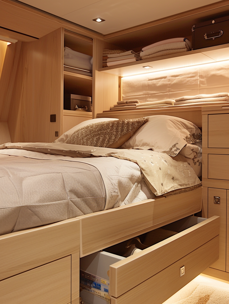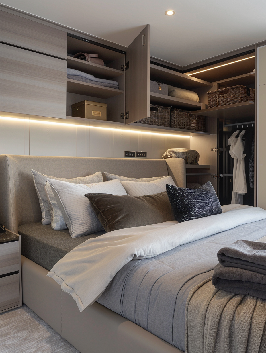 One of the most brilliant storage solutions is to organize and free your master bedroom of any chaos and clutter. Built-in shelves, under-bed storage, and multi-functional furniture like hidden objects in ottomans are the best options. Custom walk-in closets and modular wardrobe systems come with plenty of space for all the accessories and clothing. These smart storage tips don’t just fill but also the place with a beautiful look.
