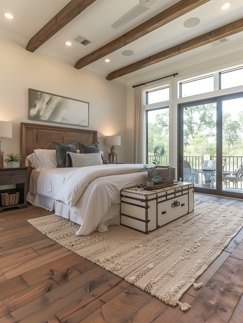 Balancing comfort and style in your master bedroom is essential for creating a space that is both inviting and visually appealing. Opt for a comfortable bed with luxurious bedding, and incorporate stylish furniture pieces that also serve practical purposes. Add plush rugs, cozy throws, and decorative pillows for extra comfort. This blend ensures that your bedroom looks beautiful while remaining a relaxing retreat.