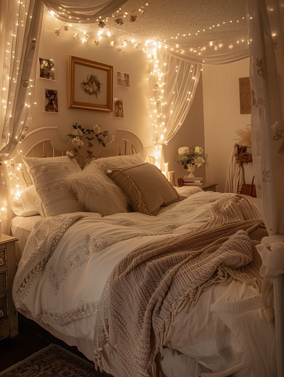 To set the right mood in your master bedroom may easily be called little art. Use dimmer switches, fairy lights, and candles to make a glow that is warm and inviting. Select lush bedding, velvet cushions, and silk pillows, which will give your room a hint of luxury. Personal elements such as framed photos, lovely notes, and floral arrangements make the room more romantic, and allows for couples to run away.
