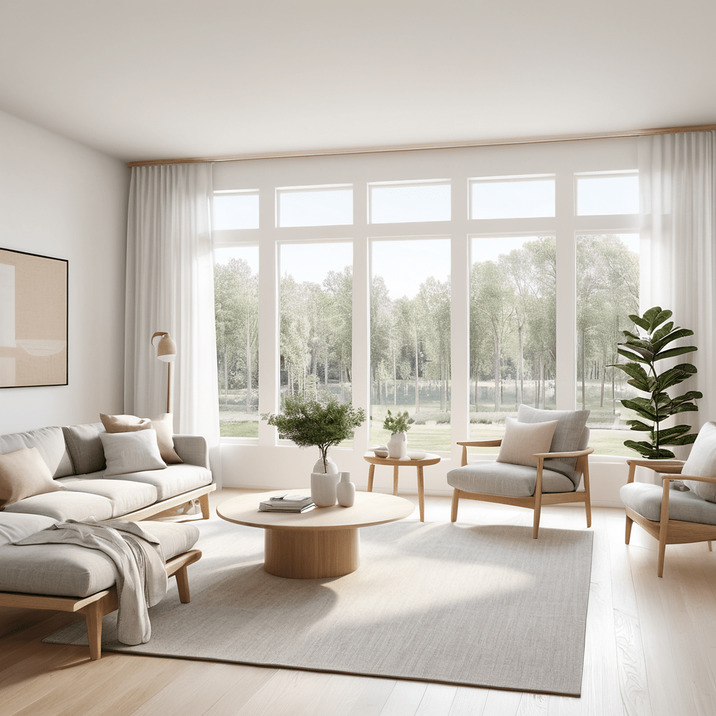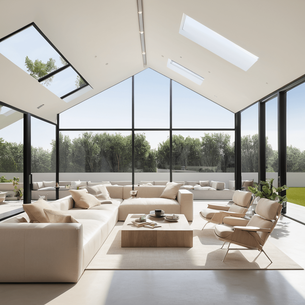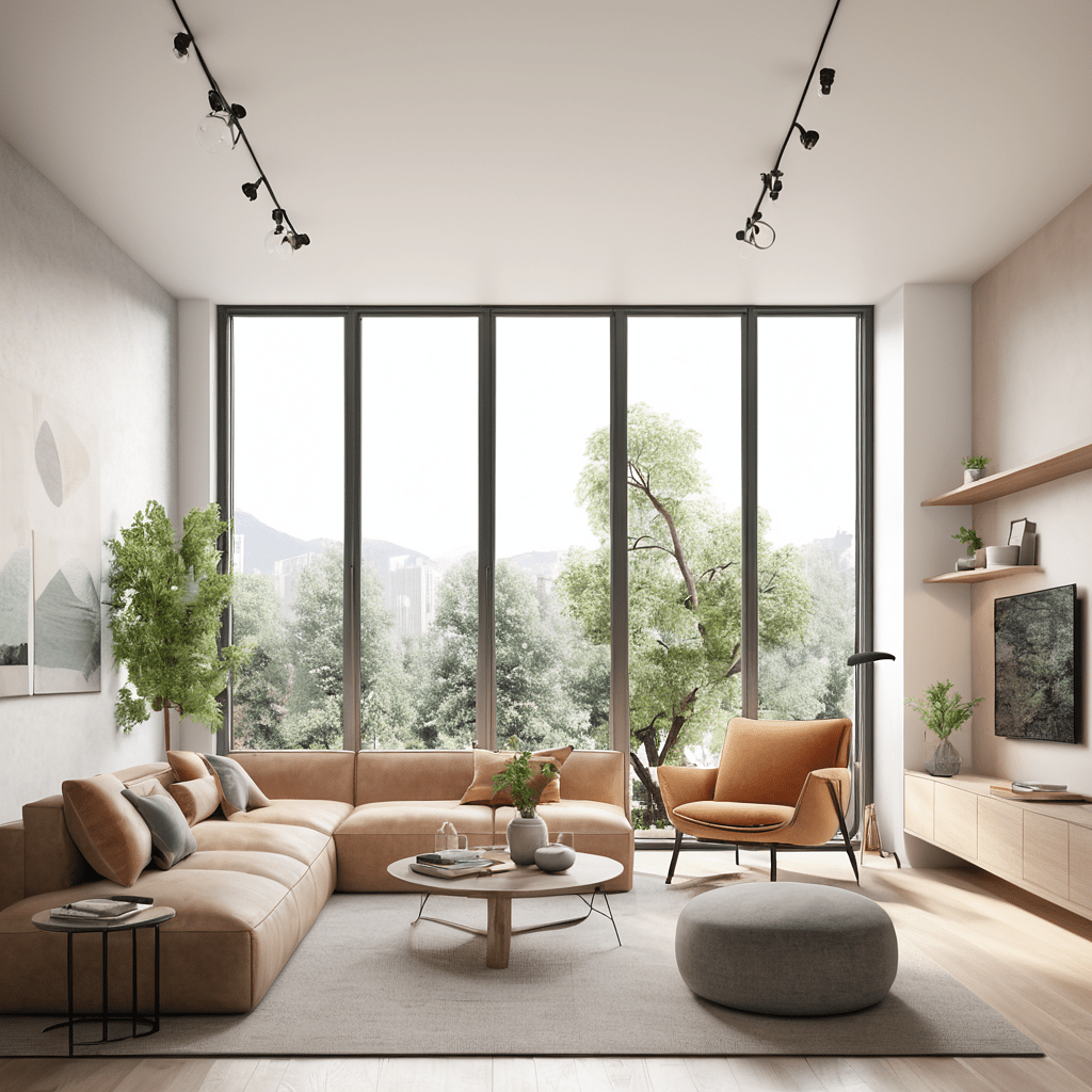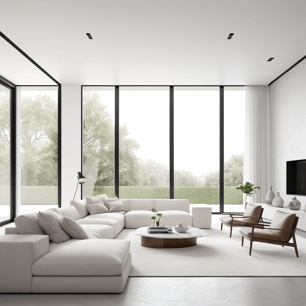 A modern minimalist living room with an emphasis on natural light creates a calm and airy space that is bright and inviting. Windows that are huge, skylights and light-reflecting surfaces are usually the main features of this design. Modest furniture with a low profile and the use of natural light as the boat of the room is a great idea. The space, even more, gains the effect of spaciousness, highlighting the color white and beige that is also included.