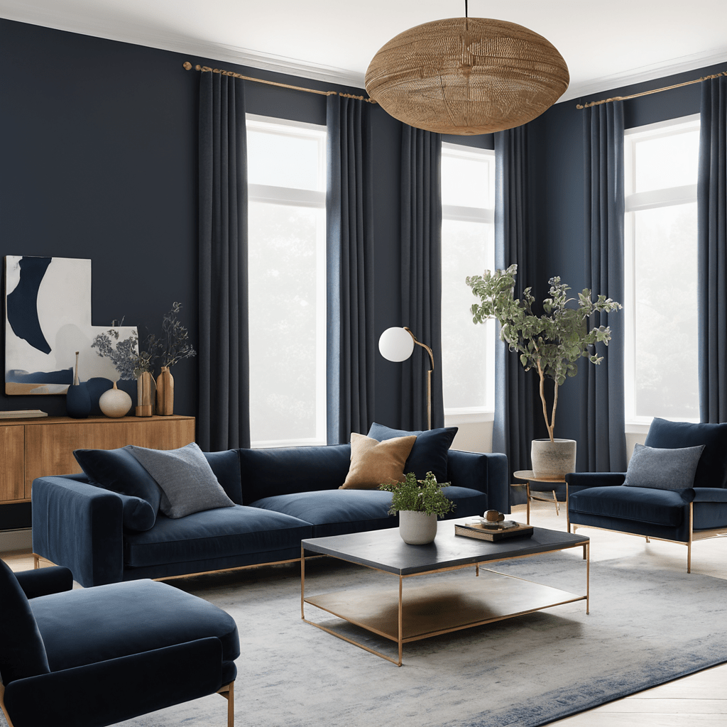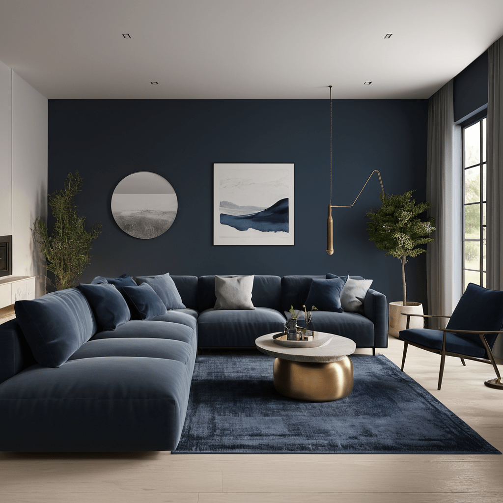 A dark minimalist living room is a design that can add tension and feel very striking and formal. These tones i.e. navy, black, and charcoal can be used to create a space that is both comfy and classy. The dark walls together with the minimal furniture create an absorbing contrast that highlights the simplicity of the design. To prevent the room from getting too dark, pair the dark colors with lighter accents and proper lighting. This simple approach is perfect for people who want their living room to have a minimalist design while also being sleek and modern.