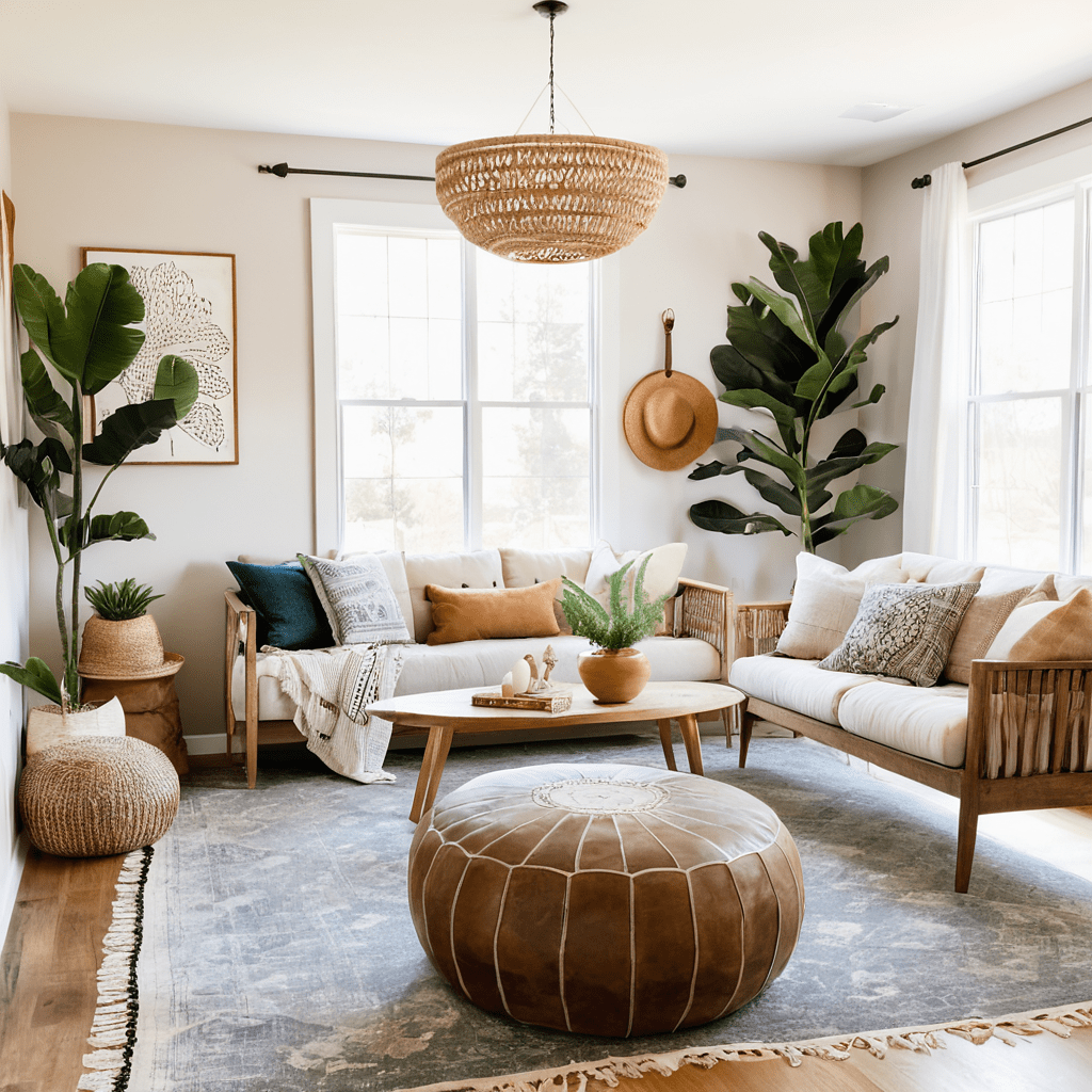 Bringing together both boho and minimalist living room decor gives you a space that is not only different but also charming while the boho identity is maintained alongside the minimalism of the lines. In this kind of style, natural materials, and an eclectic mix of decorations which include plants are all selected with precision to avoid overcrowding and hence the room looks simple. Just imagine a room with knitted carpets, macramé wall hangings, and some well-chosen plants spread across a room full of wardrobe, colorless furniture, and neutral colors.
