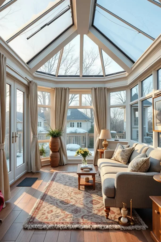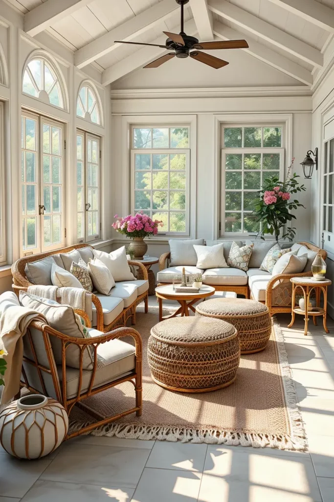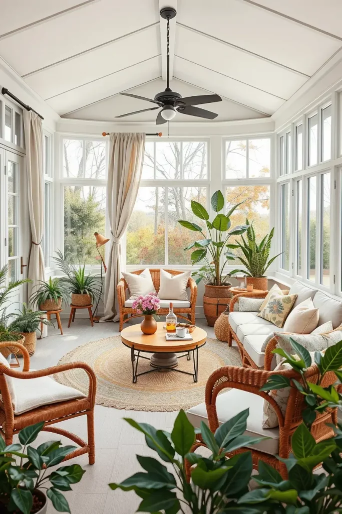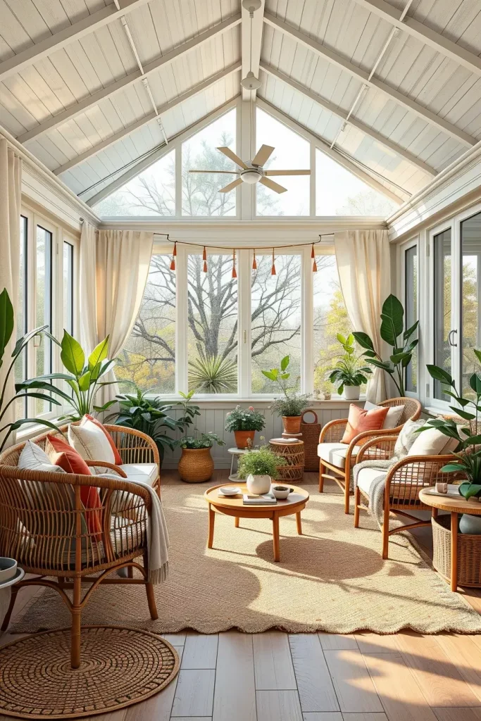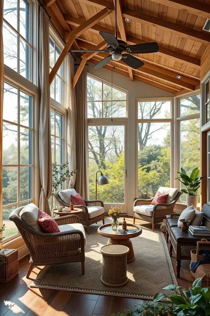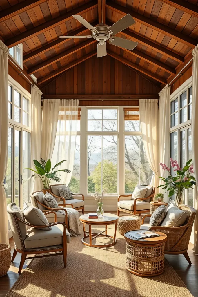 A sunroom ought to change based on the season and it should be stylish as well as practical. In my opinion this is because seasonal styling maintains the space dynamic and aesthetically stimulating. In the spring and summer, light linen curtains, potted plants and soft pastel details are used to add freshness. During autumn and winter, I prefer to use more dense throws, comfortable fabrics, warm amber colors in order to create a cozy shelter. This is why the sunroom seems to be alive throughout the year.