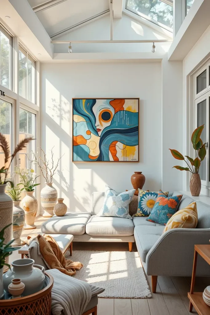 As an individual, I feel that art makes a sunroom be more than an extension of the home but a place of inspiration. As Elle Decor frequently stresses, the urbanity of interior spaces is modern as due to the combination of neutral background and colorful artistic elements.