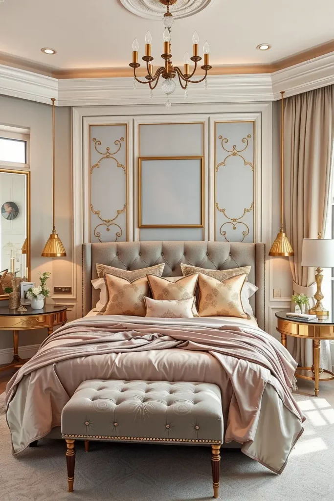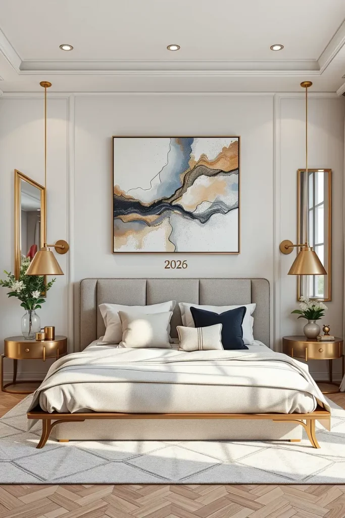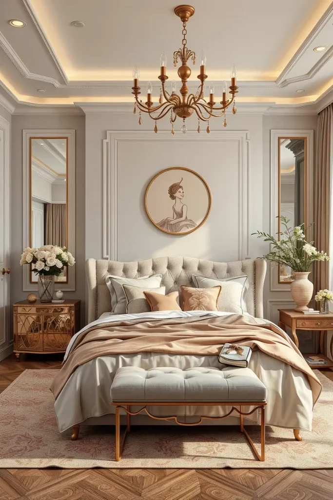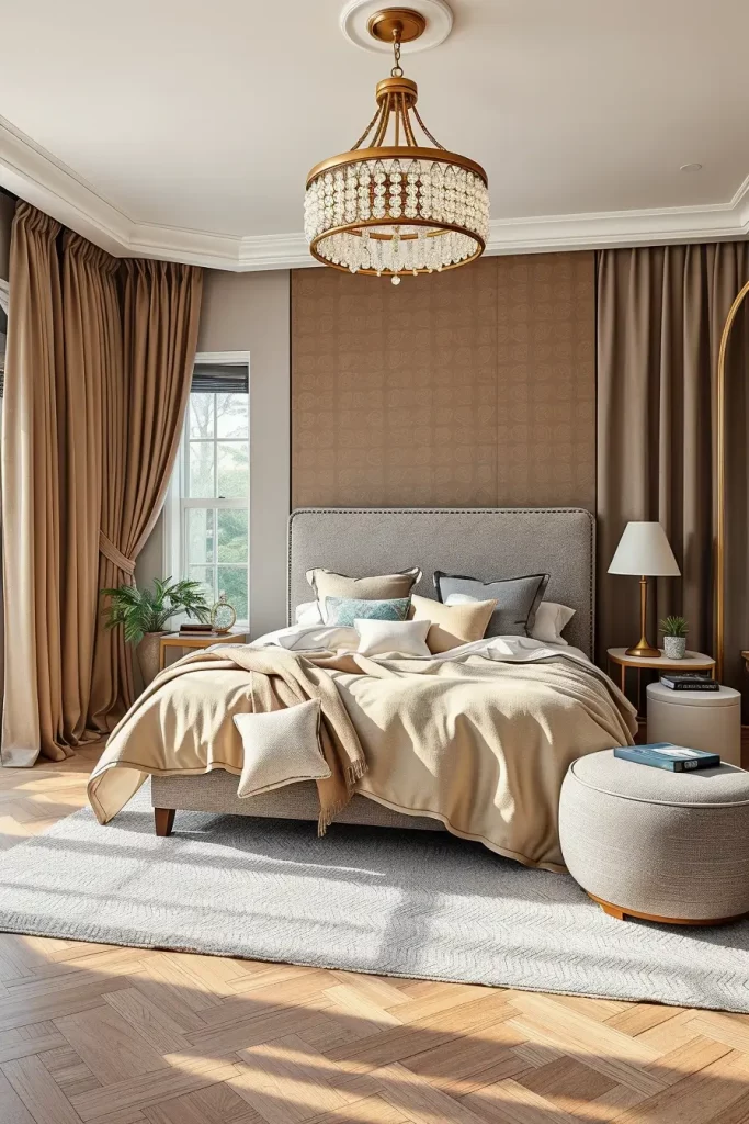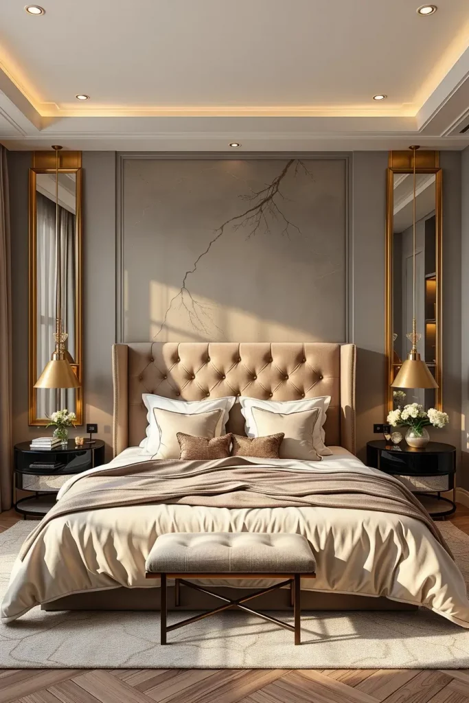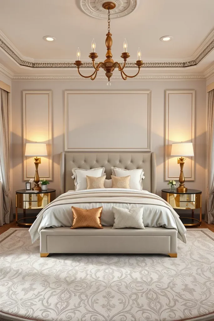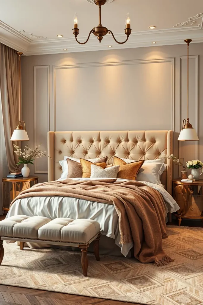 Soft Neutrals And Metallic Accents In Bedroom Decor
