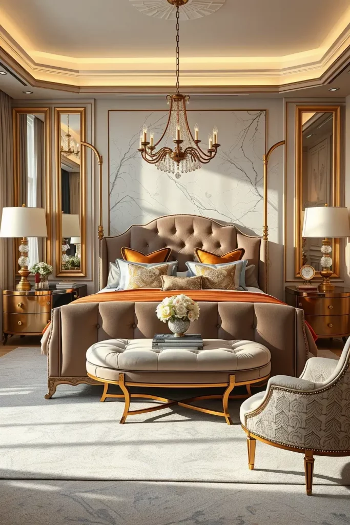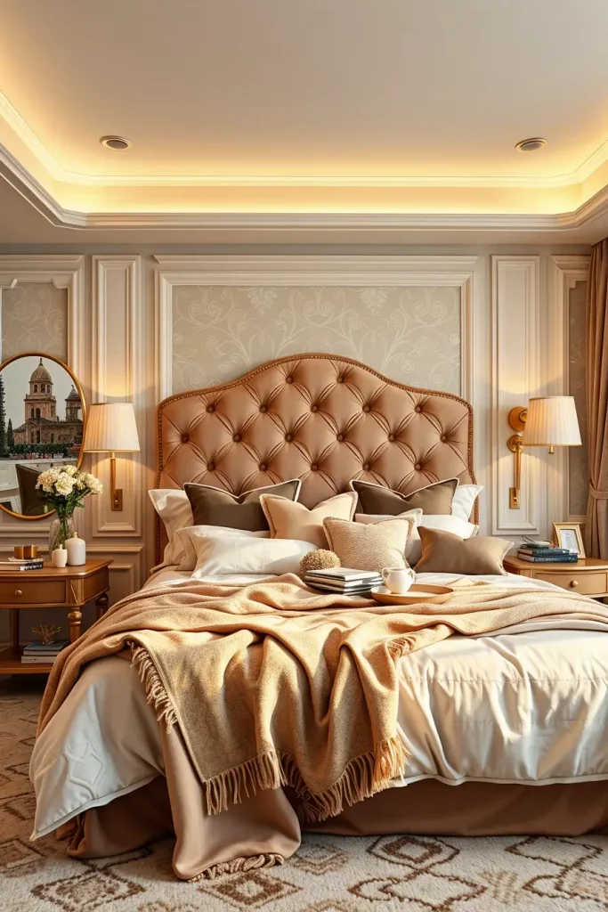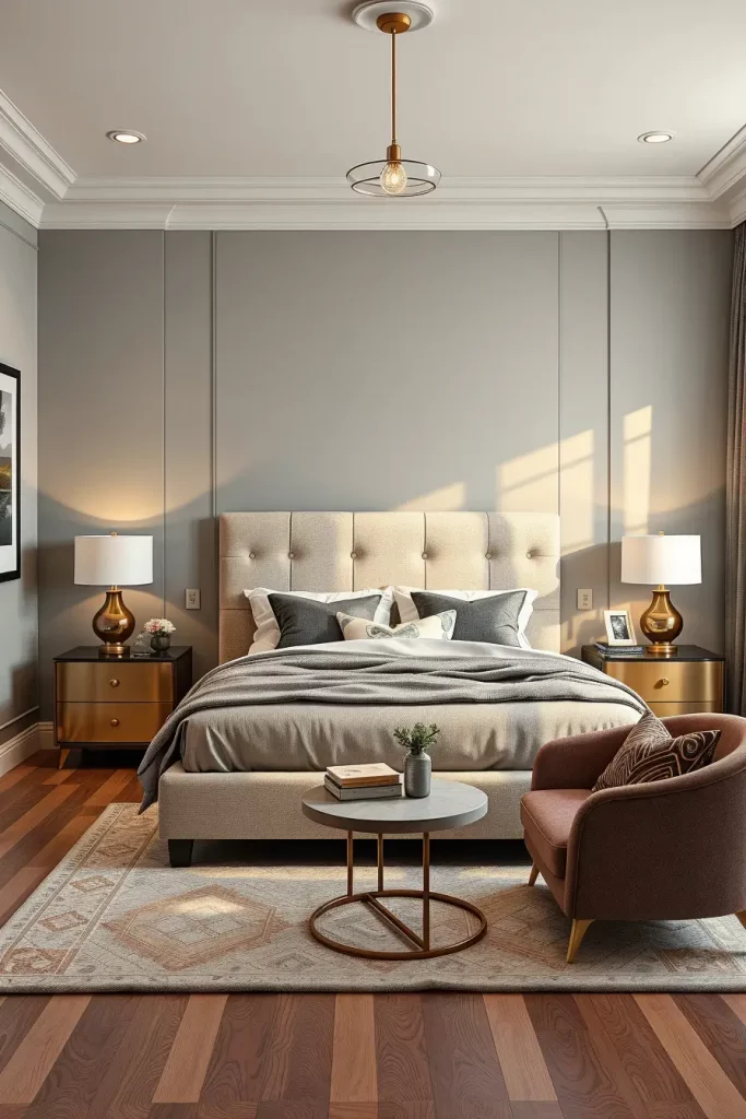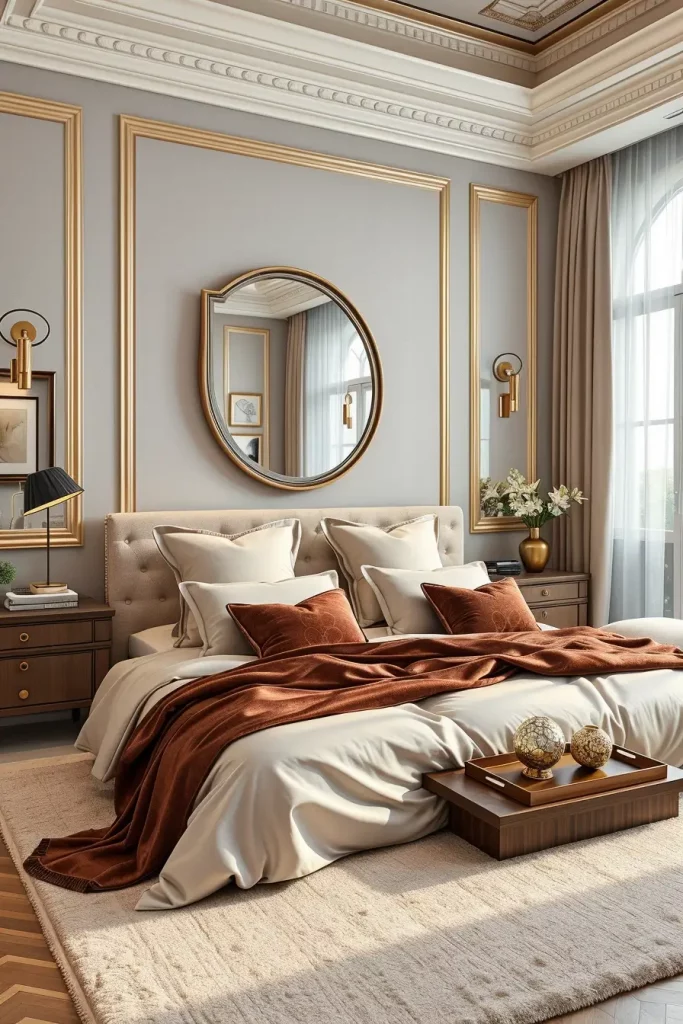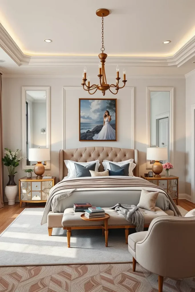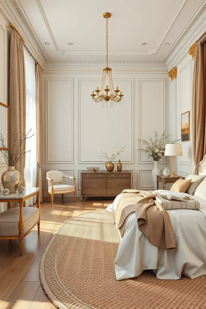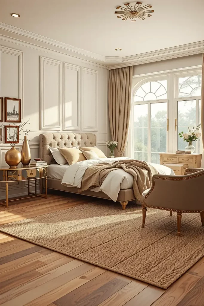 Soft Neutrals And Metallic Accents In Bedroom Decor