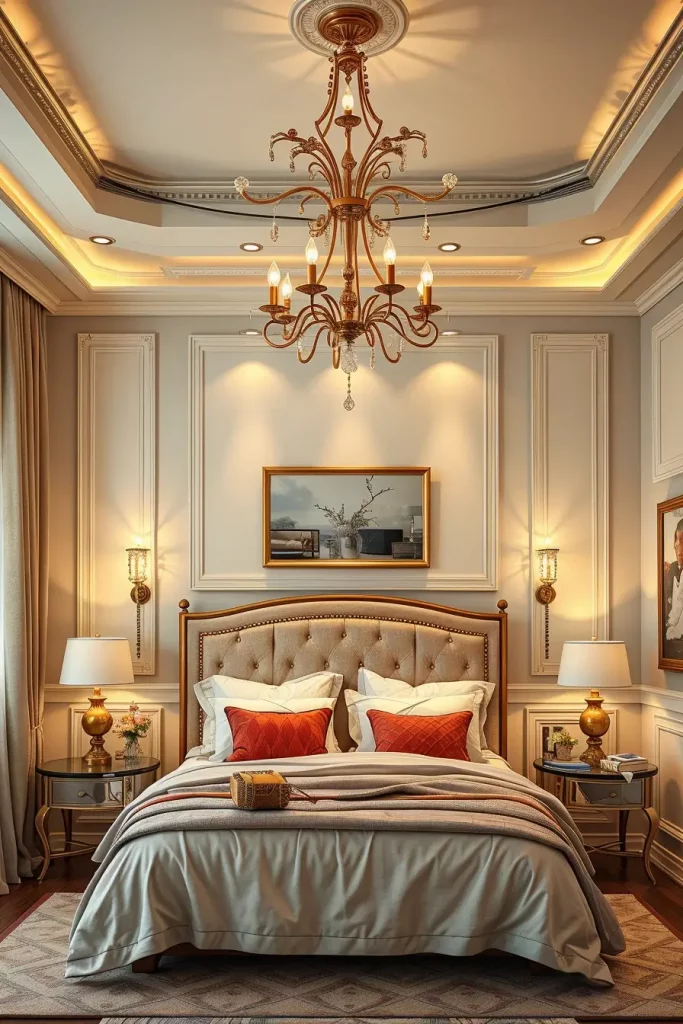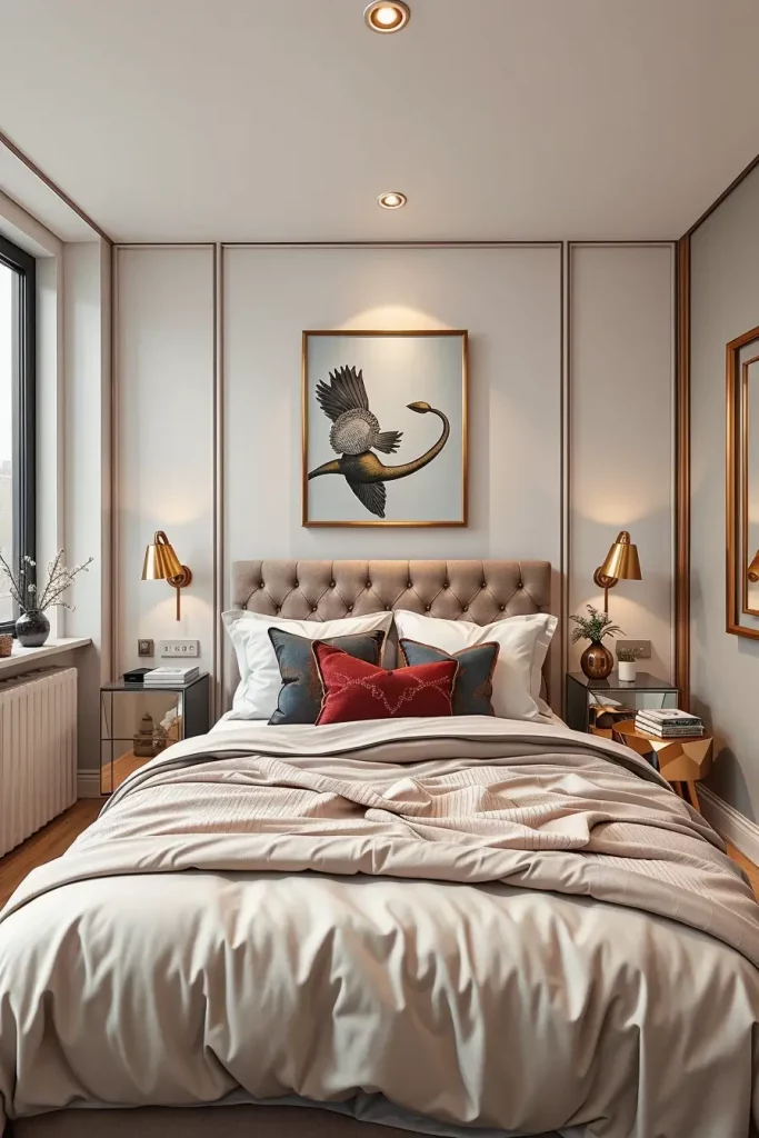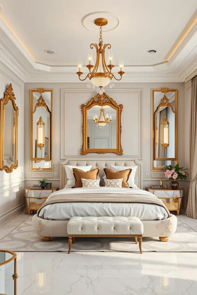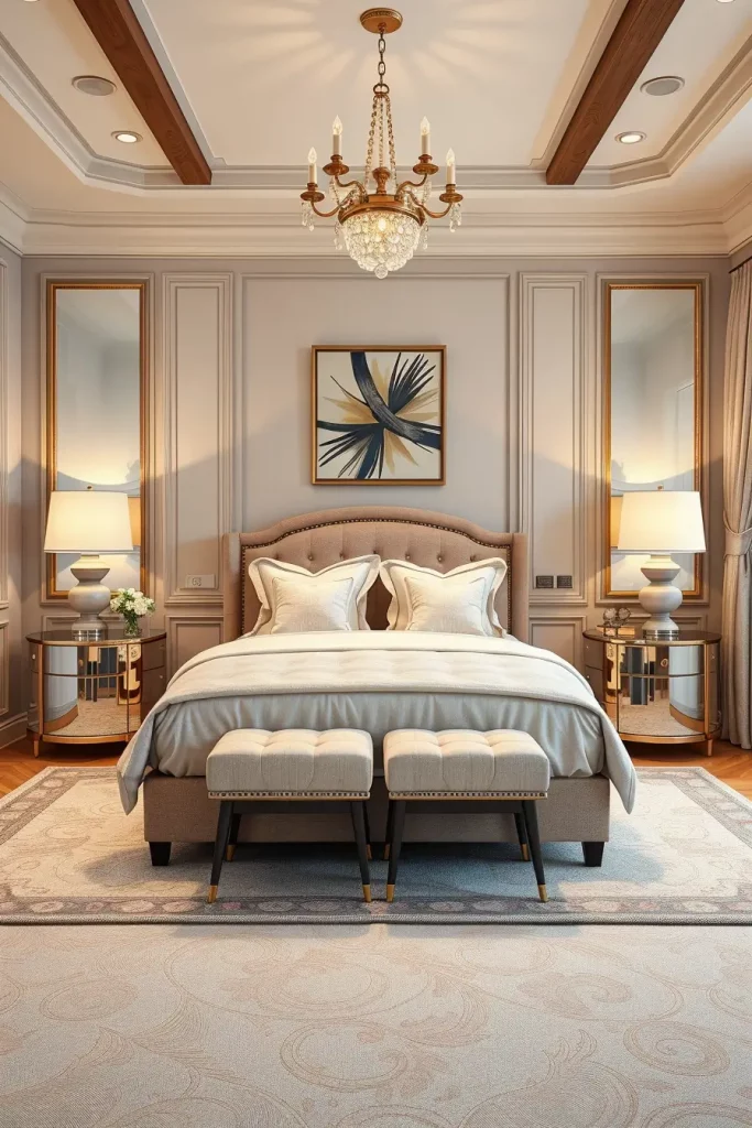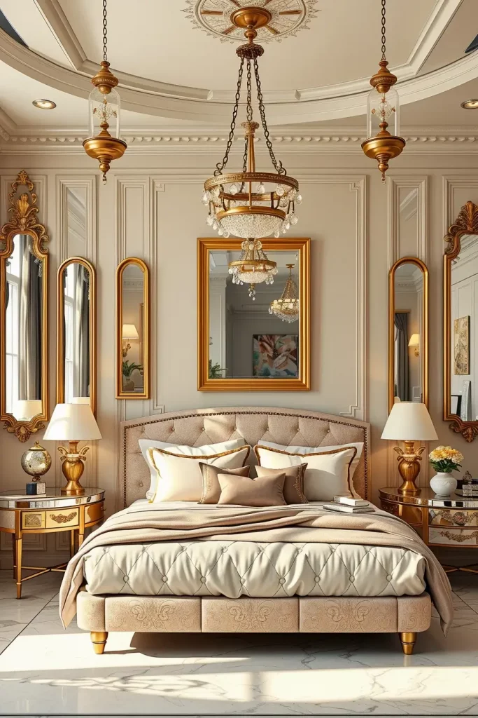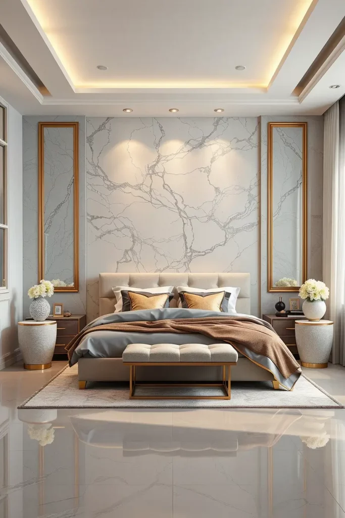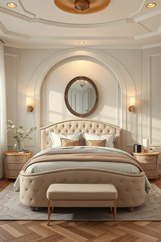 Soft Neutrals And Metallic Accents In Bedroom Decor