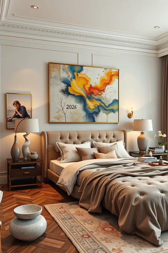 In 2026, statement furniture will be an important way of defining an impressive bedroom. I have also come to know that a single or two pieces of influential art can turn even a very simple room into something special. The center piece can be a sculptural bed frame or an artistic vanity that provides the room with a classic personalized microcosm.