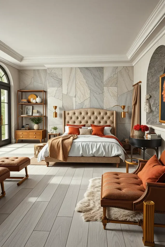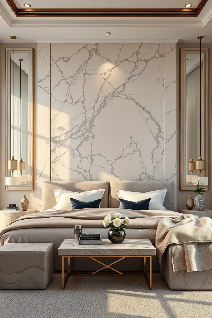 Using marble and natural stone as luxurious bedroom design features has become a characteristic feature of luxury in 2026. I believe that the addition of these materials, be it accent walls or bedside tables, or floors, gives an organic but high-end touch to the room. The surfaces of the polished stones are able to reflect light, producing a calm atmosphere that helps to increase relaxation.