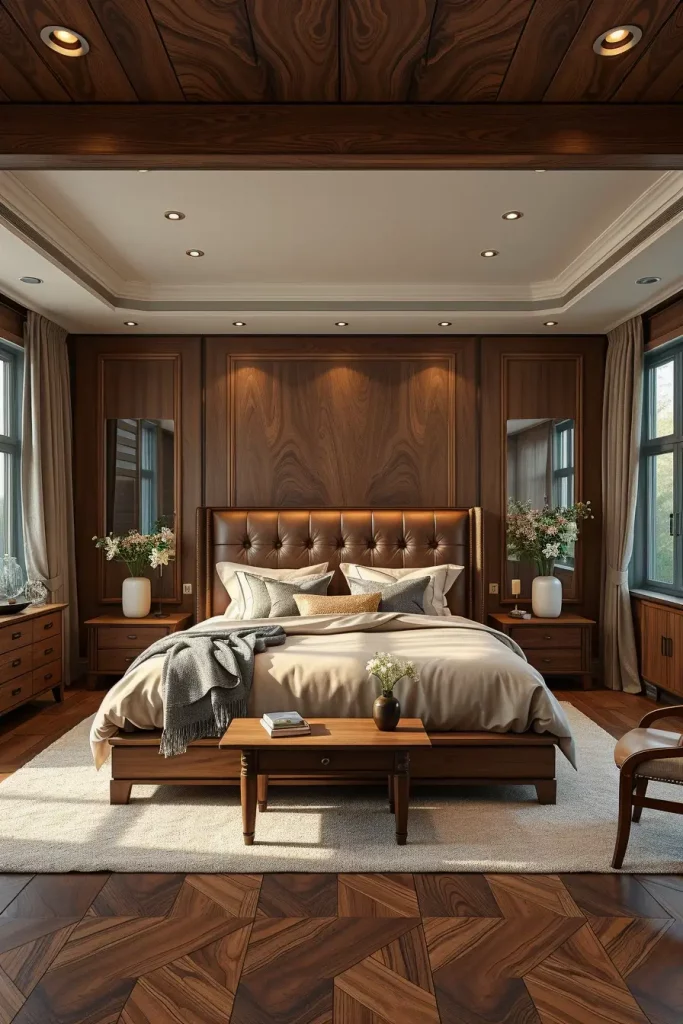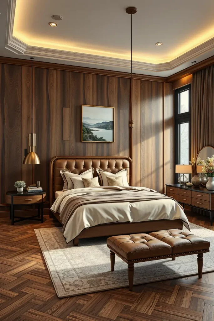 The pieces of wood add to the atmosphere. The room can be elevated instantly by a dark mahogany bed with gold handles or a smooth oak dresser. Textures that are natural in effect are combined with premium such as leather or silk bedding to make the environment refined and comfortable.