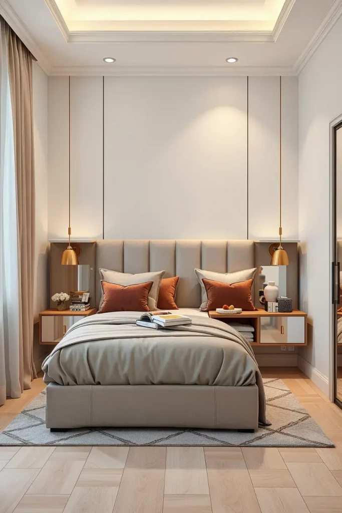 Beauty is not about the size, even little rooms can be a place of a sophisticated bedroom design. In compact areas, I focus on light colors, finishes that are mirrored and multi-purpose furniture to make the areas look open. Nightstands on skids, wall lamps, and clean built-ins do not occupy the physical or visual space, and they are not luxurious.