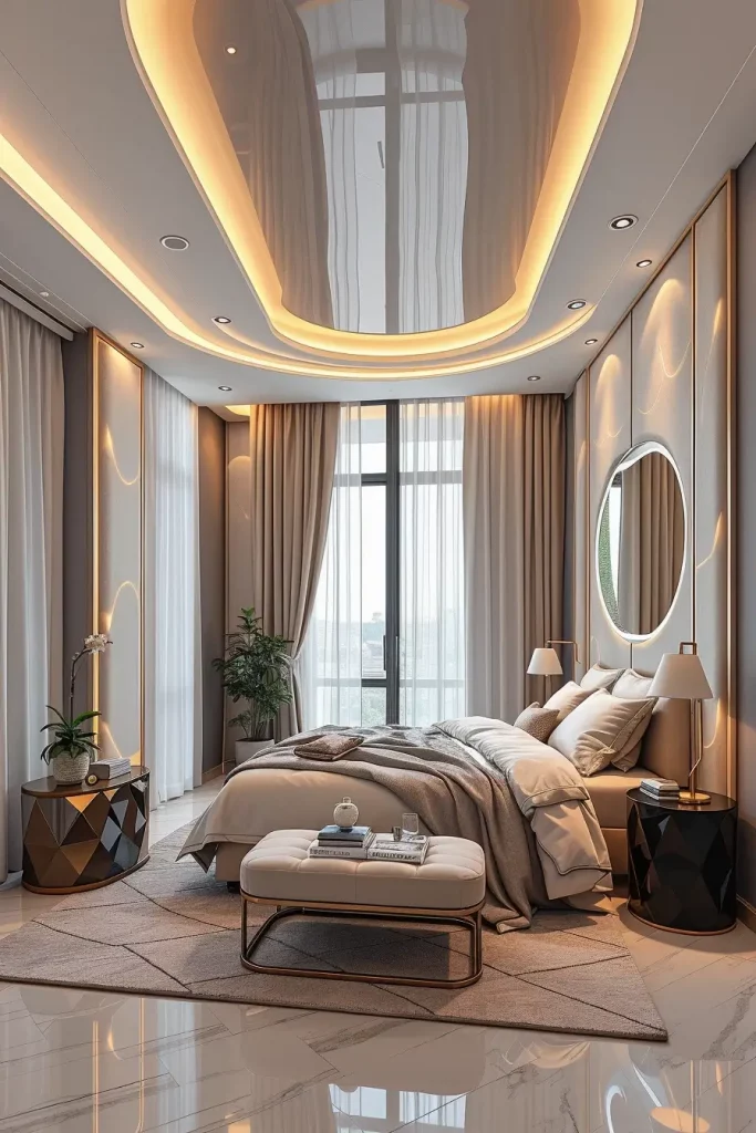 In 2026, curved lines will be shaping the modern bedroom design, bringing softness and flow to previously sharp-geometric bedroom designs. I consider that rounded nightstands, oval mirrors, and curved headboards give this feeling of a balance, which is elegant yet inviting.