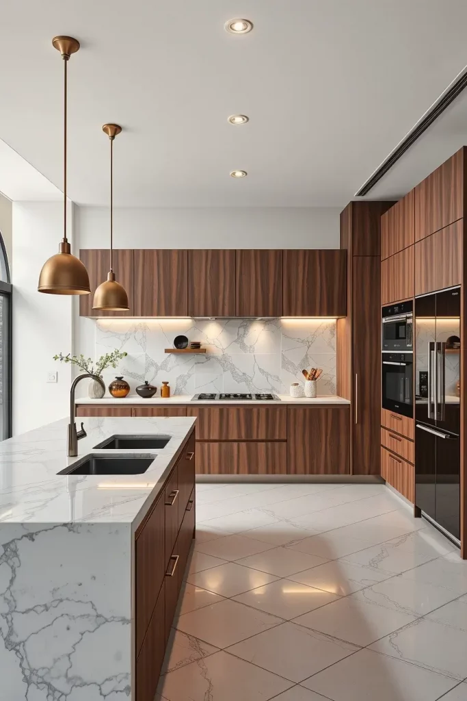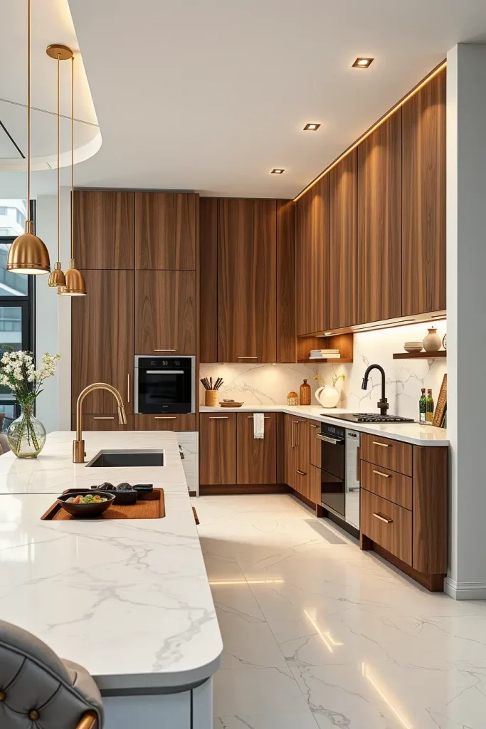 Some of my projects usually feature multi-level counters, inbuilt appliances, and smart storage. There is a reason behind everything and the design is also very elegant and contemporary. The balance between the utility and form is emphasized by smooth transitions between such materials as marble, glass, and wood.