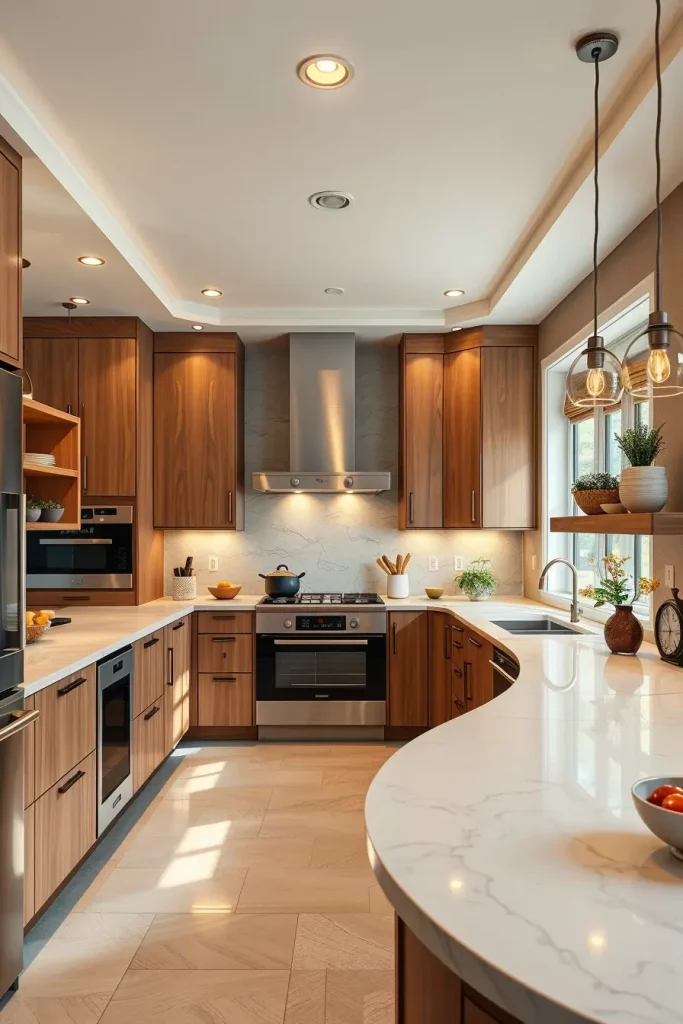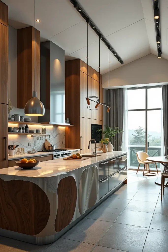 As a designer, the future of the modern kitchen design is the incorporation of technology with natural geometry; smooth lines, organic shapes that are unique and curved furniture that give the impression of flow. It is not just the focus on functionality anymore but on the emotional comfort and spatial balance.