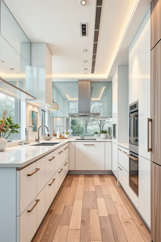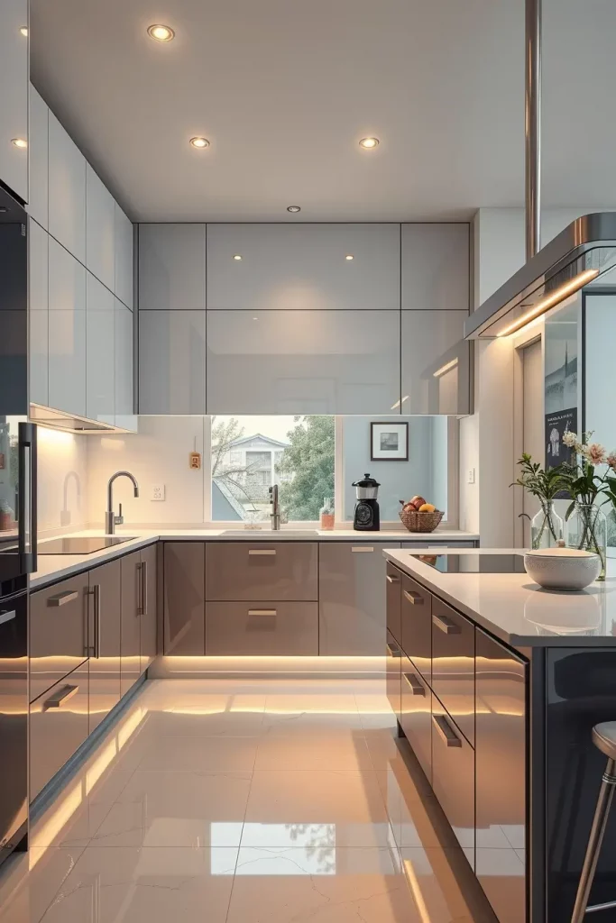 Sculptural countertops, streamlined cabinets, and concealed appliances are part of my projects to maintain the aesthetic unity. The outcome is a contemporary kitchen that is dynamic and relaxing. The illusion of continuity is promoted with the help of gloss finishes and low-key lighting.