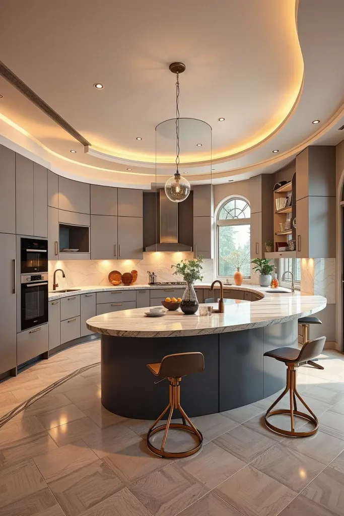Oval-Shaped Counters Defining Kitchen Aesthetics