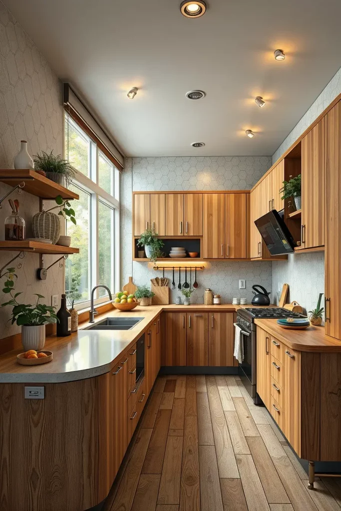 I would also include that greenery or soft clay decor would make the organic kitchen design more natural to the look of the design to provide the design with a relaxed, but fine atmosphere.