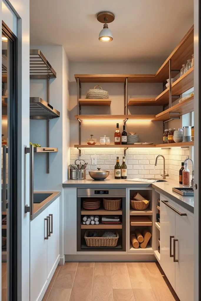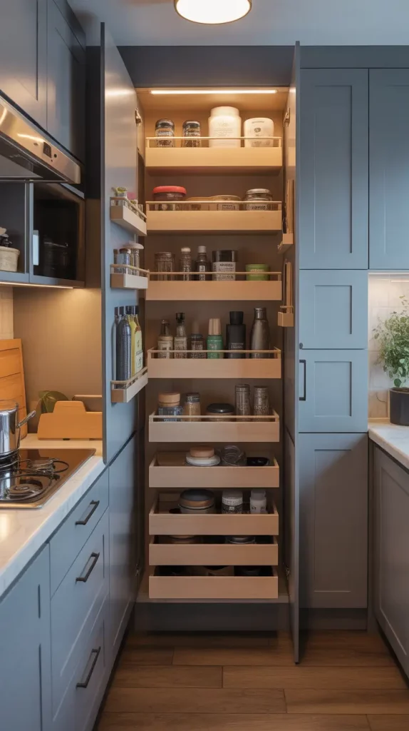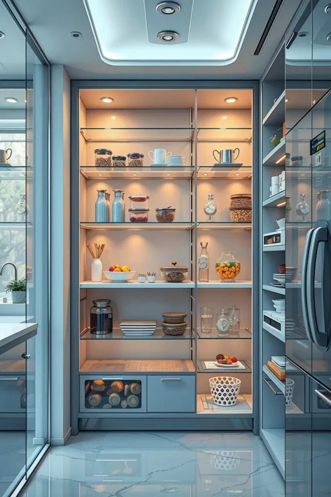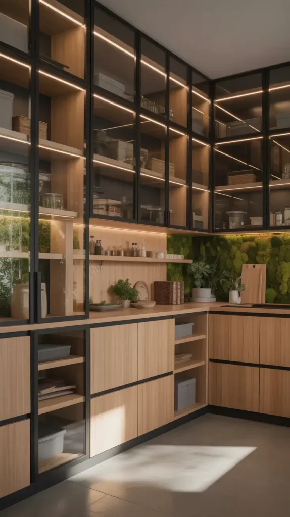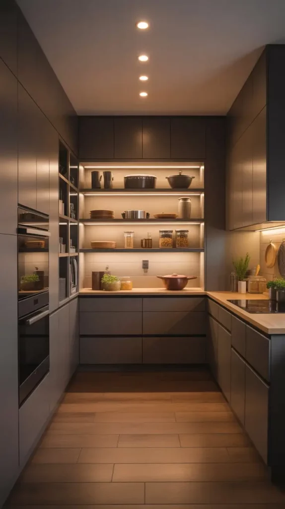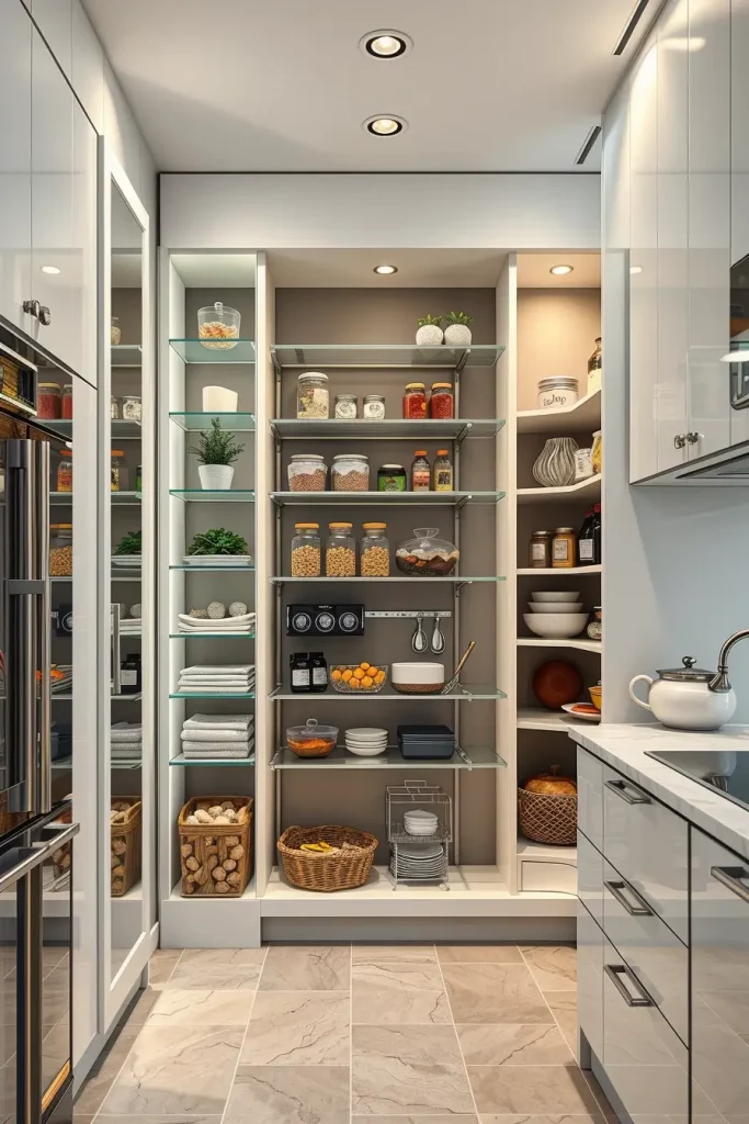 In tight spaces, an inbuilt pantry will help. It can be fitted perfectly well in kitchen cabinetry to provide a smooth and continuous appearance. I consider the given concept to be especially helpful in open-concept houses where visual flow plays a central role.