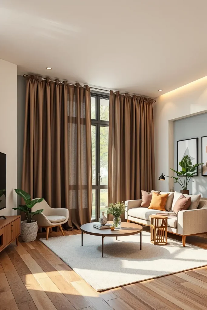 Cinnamon Brown Curtains For A Cozy And Rich Living Room Ambiance
