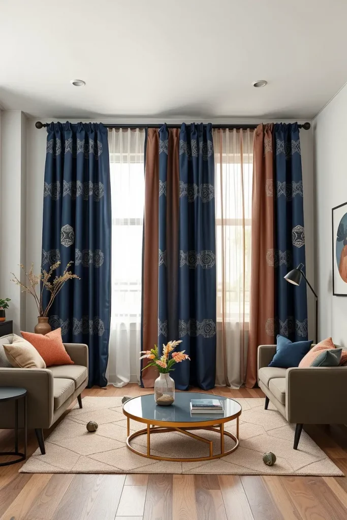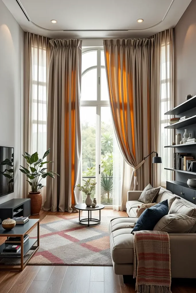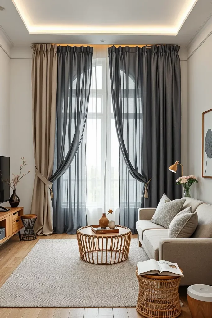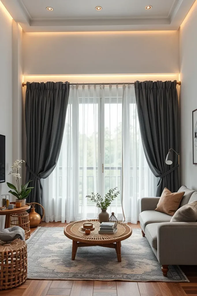 I like the fact that when I install Layered Sheer-and-Blackout Curtains I can have the maximum flexibility in the control of daylight without compromise of style. The sheer layer is also very soft and matches perfectly with colors such as Warm Beige, Sage Green, and Dusty Rose, and the blackout layer would provide a hundred percent privacy when necessary. This layer-up design is ideal in multipurpose living rooms that change to entertaining and relaxing the entire day.