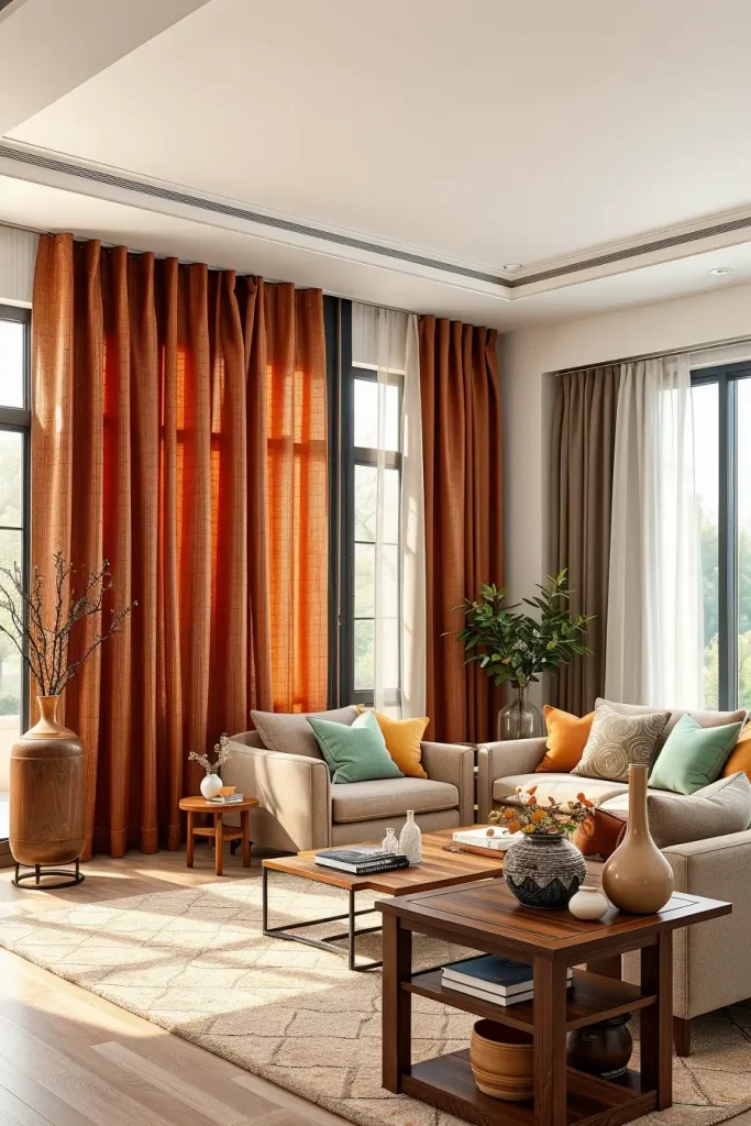 Terracotta Curtains For A Warm, Earthy Living Room Glow