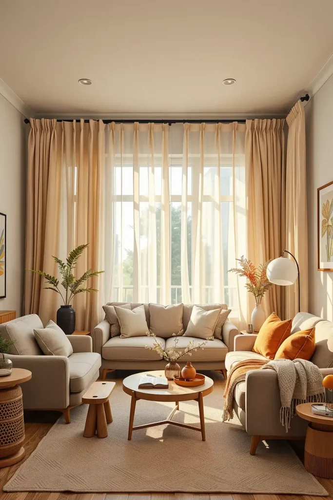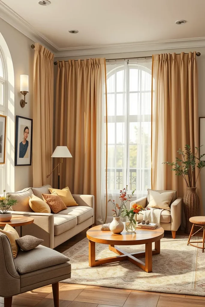 Warm Beige Draperies For Soft And Timeless Living Room Elegance