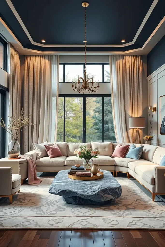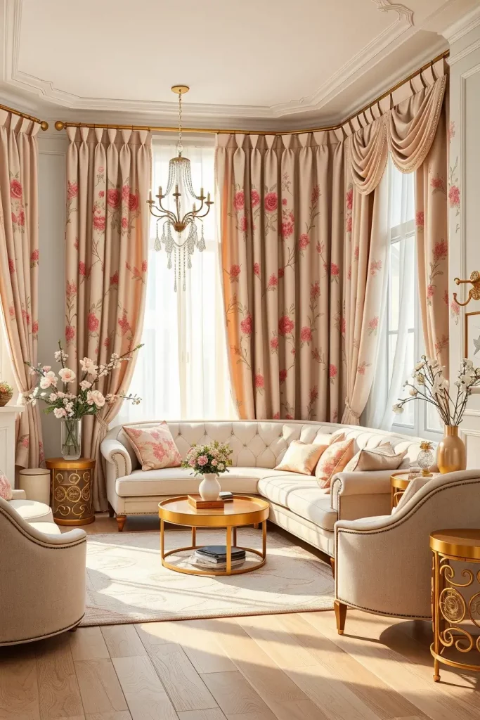 In the case of furnishings, dusty rose is effective in combination with the cream sofas, gold details, and round pieces of furniture. I usually put glass coffee tables, soft wool carpets, and ceramic lamps to keep the place feminine and modern. Metallic Thread Accent Curtains may also be used to obtain a higher status curtain design to a client who intends to have a glamorous look.