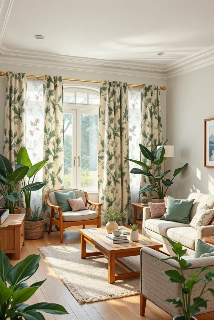 Printed Botanical Curtains For Nature-Inspired Living Room Freshness