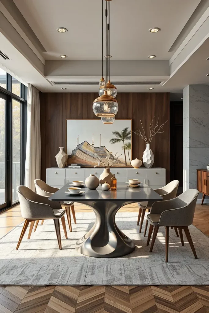 I think that the year 2026 is the year of innovation in the way it is possible to remodel the dining rooms, and sculptural decor makes a significant contribution to it. I also adore engaging elements of art which make the dining place a gallery of forms and materials. It is centered on individuality – a mixture of function and art.