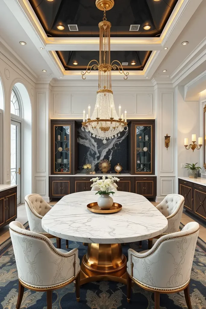 Those, who have been dreaming about luxury, 2026 has refined luxury remodeling of the dining room whereby craftsmanship and material choice is supreme. In my opinion the secret is in the balance, luxury must not be threatening but inviting. Imagine marble tables, cushioned velvet furniture, and furniture that is specially made with brass or gold trim.